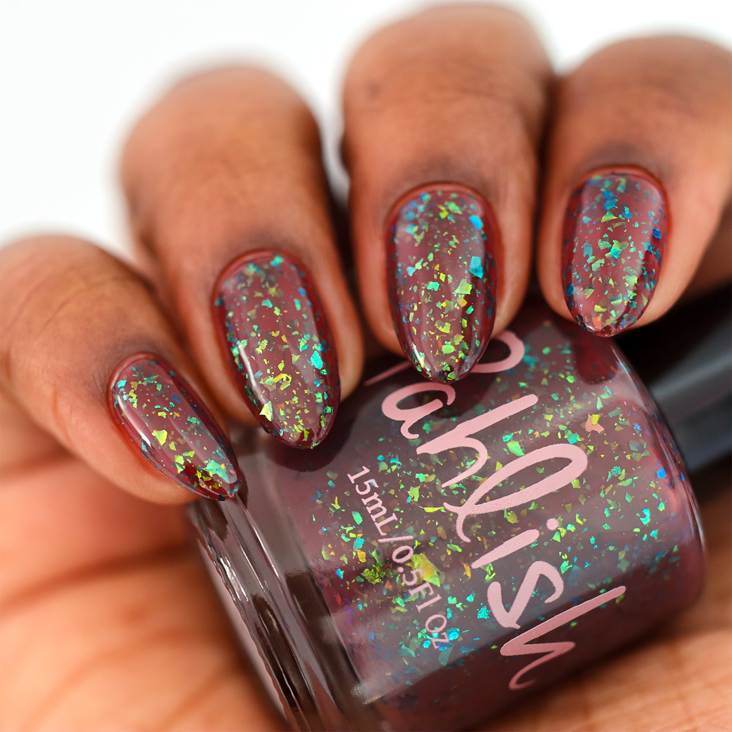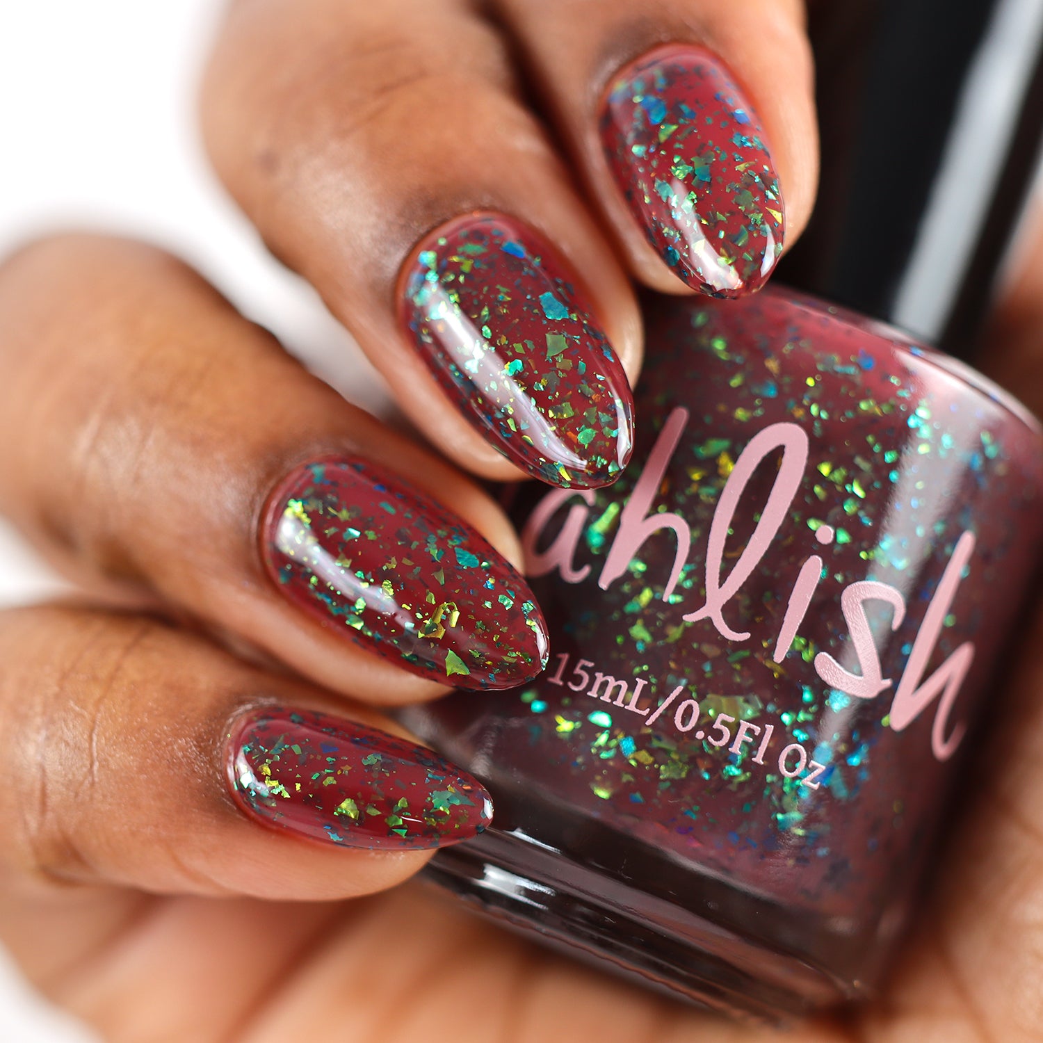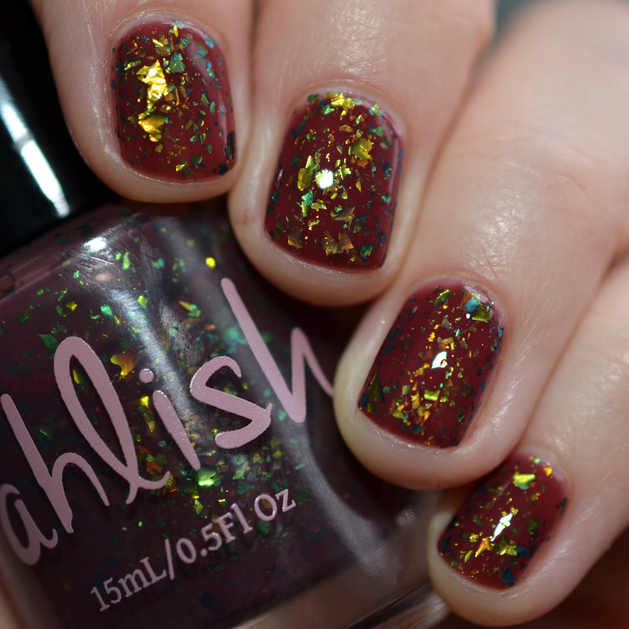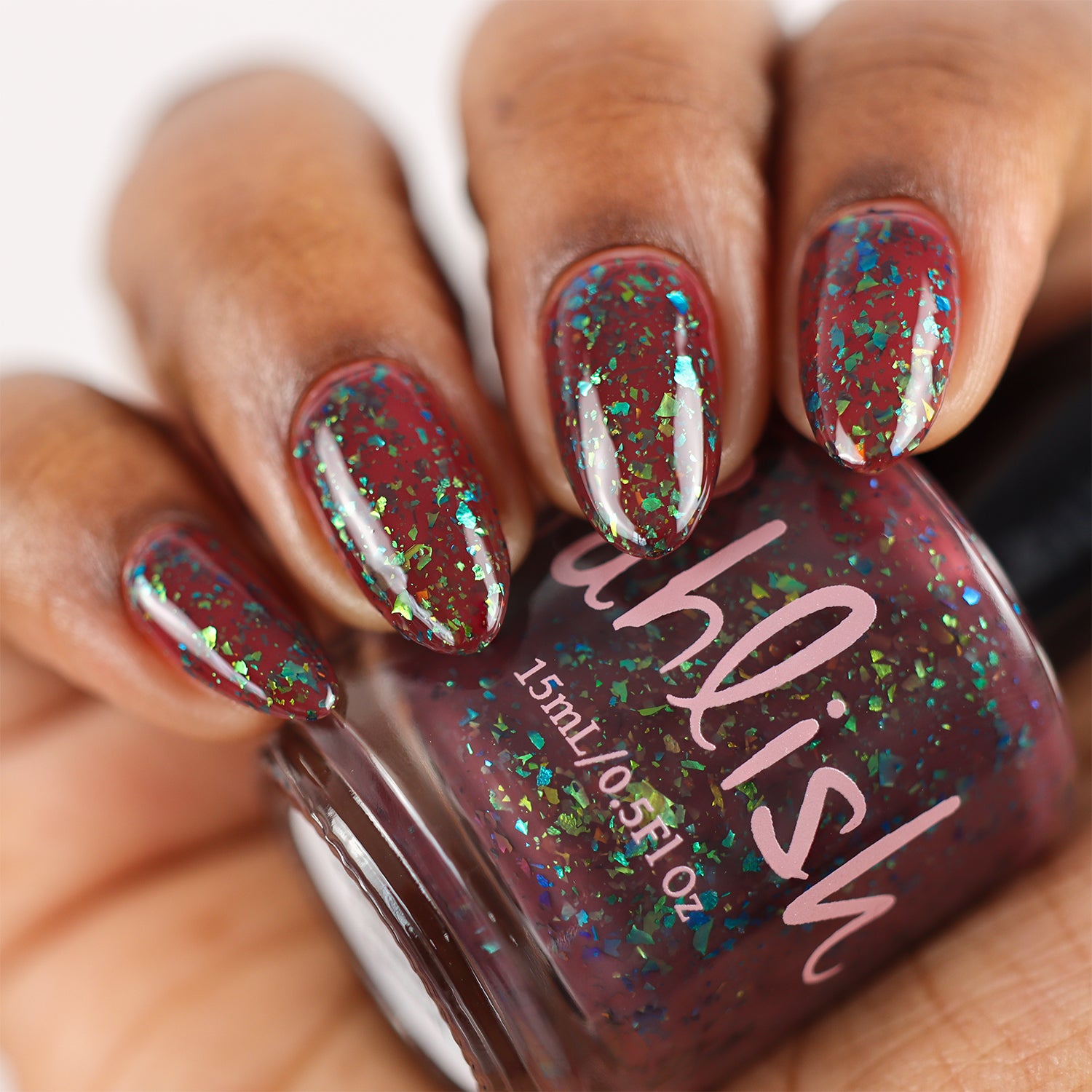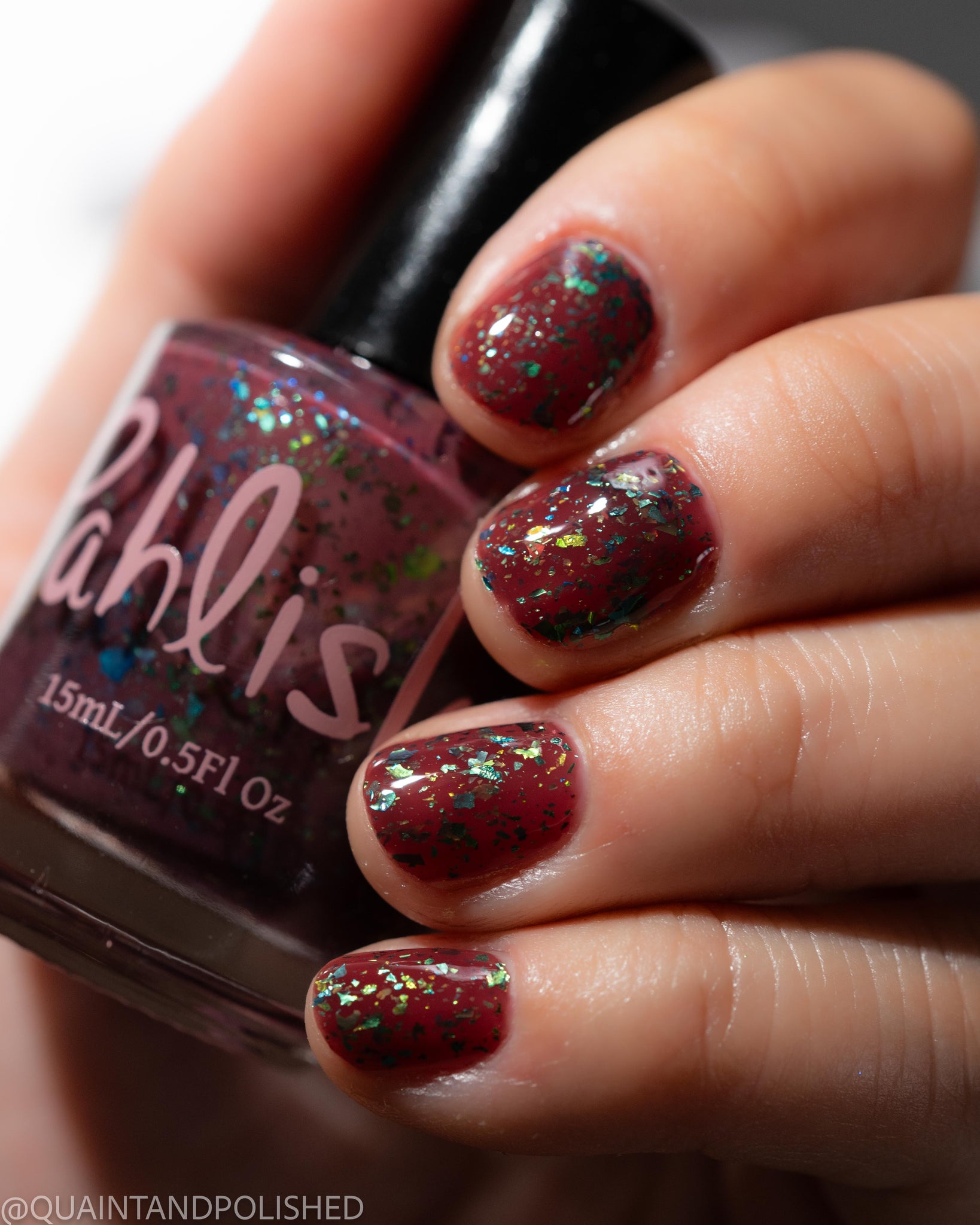 deep raisin cream with metallic multichrome flakes that shift green/gold/blue