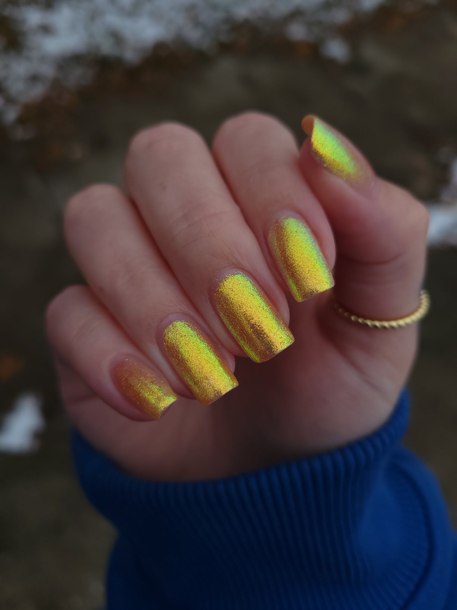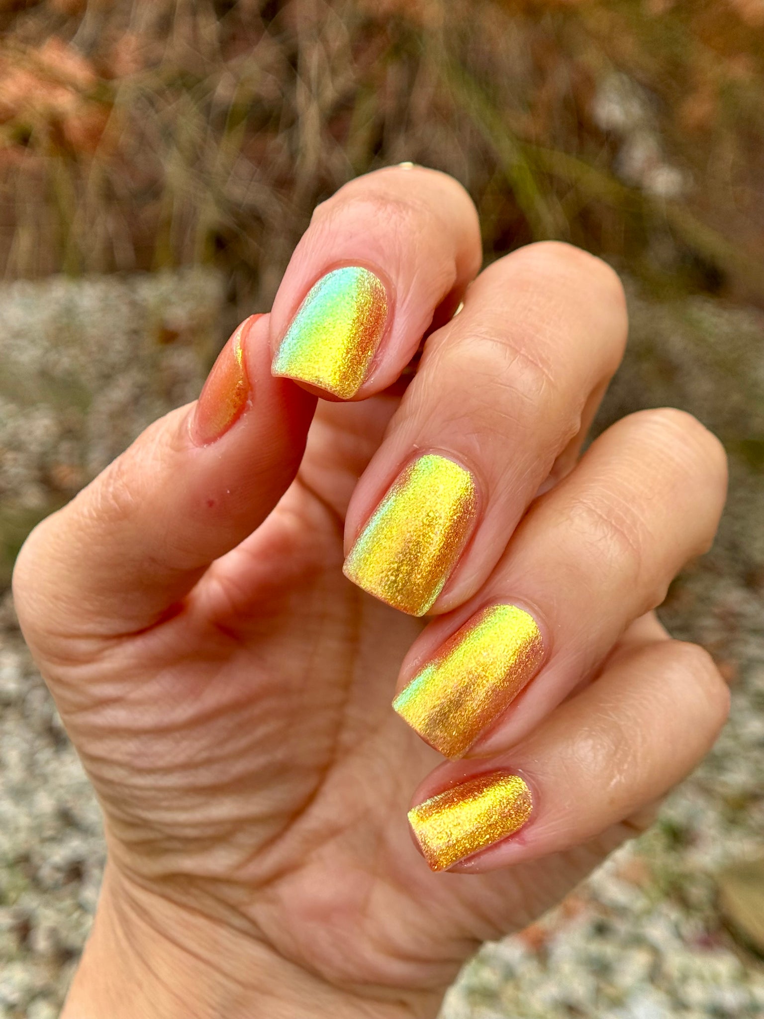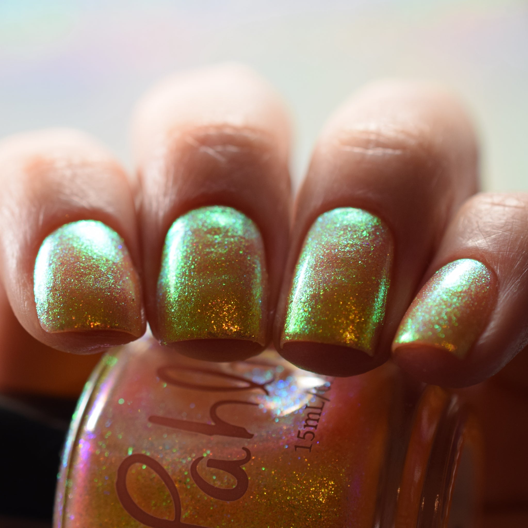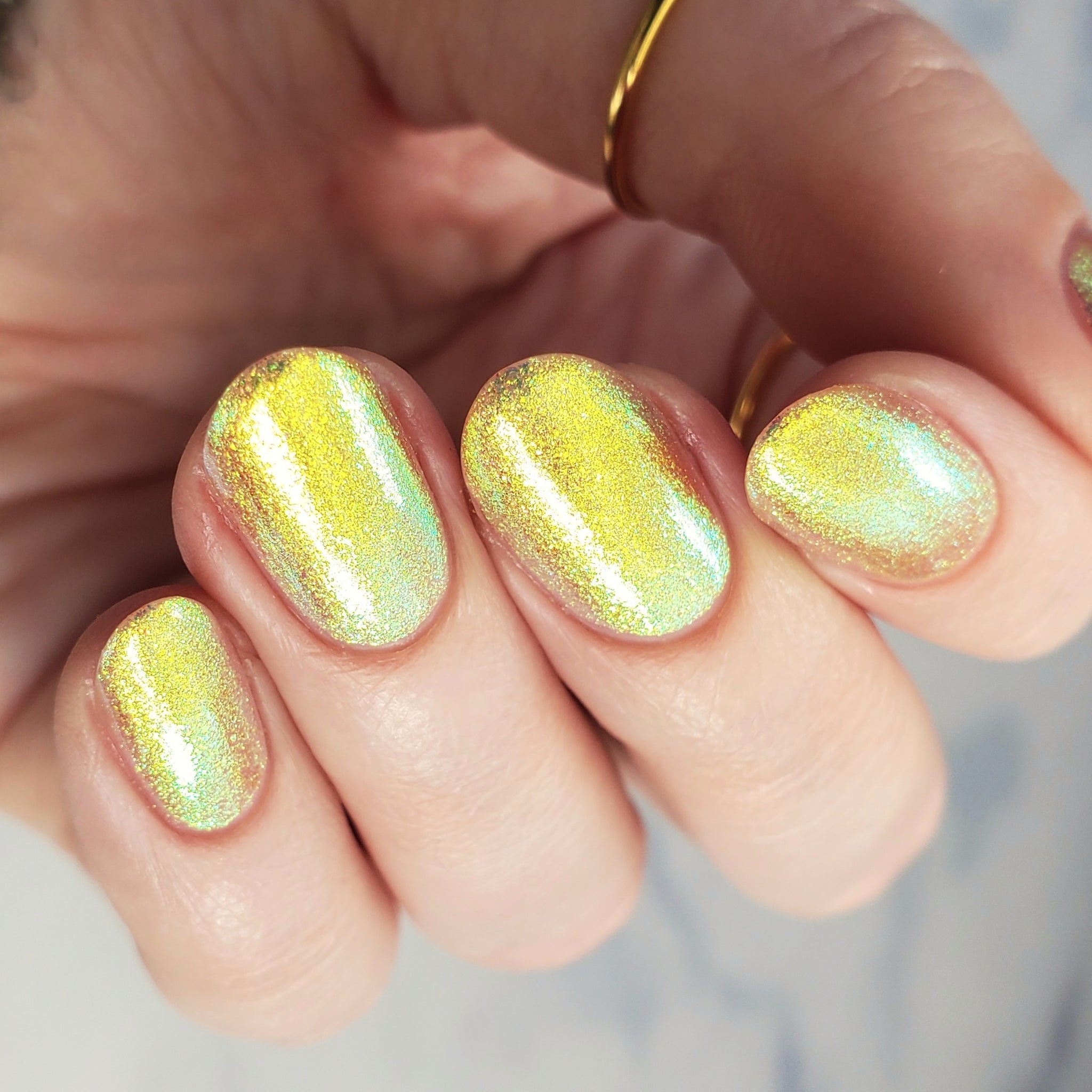 honey blonde packed with golden/copper/green shifting shimmer