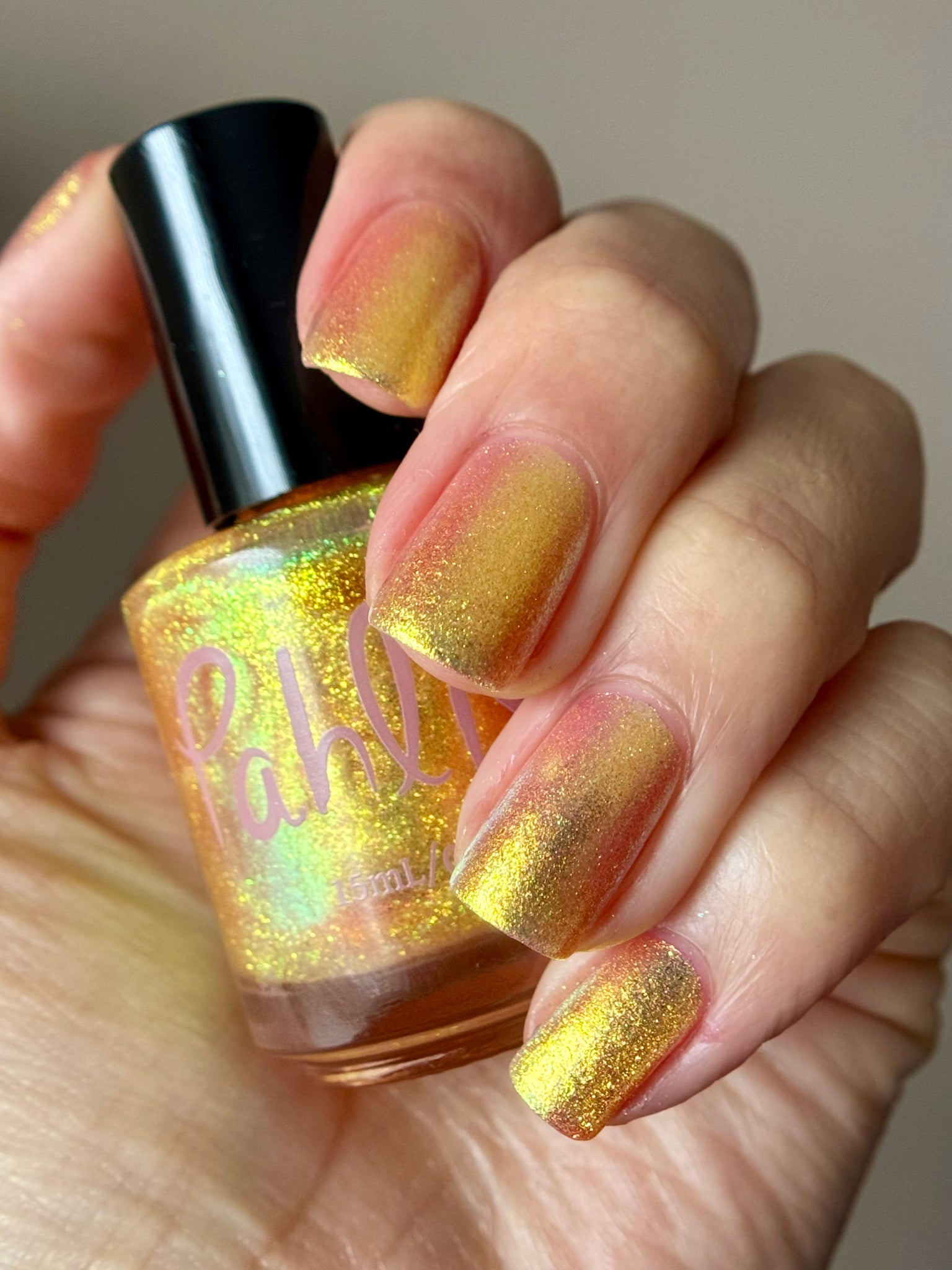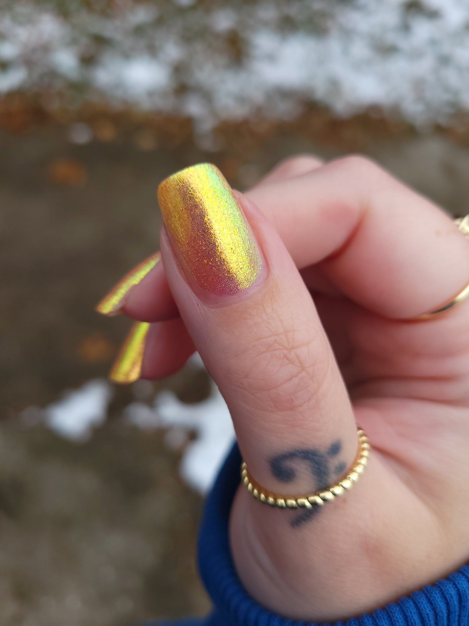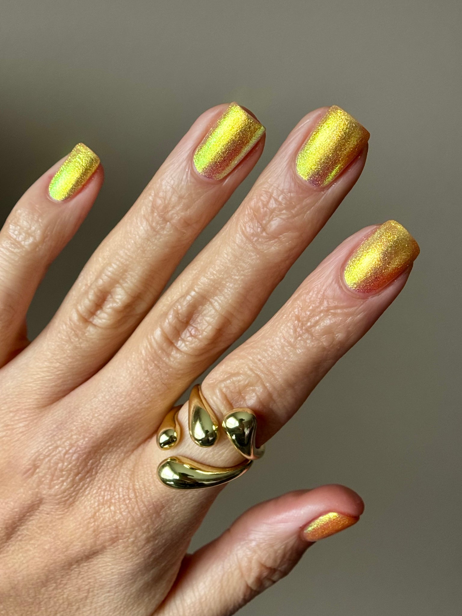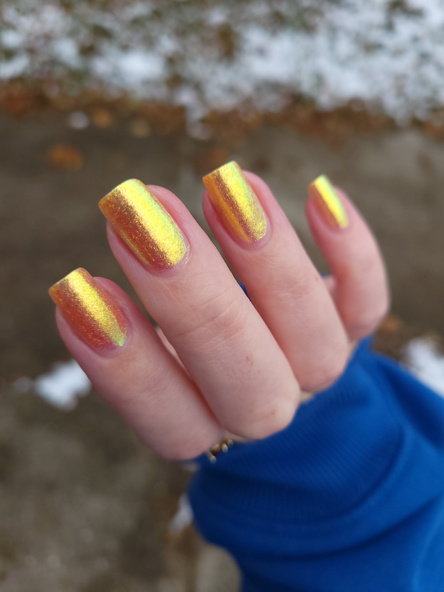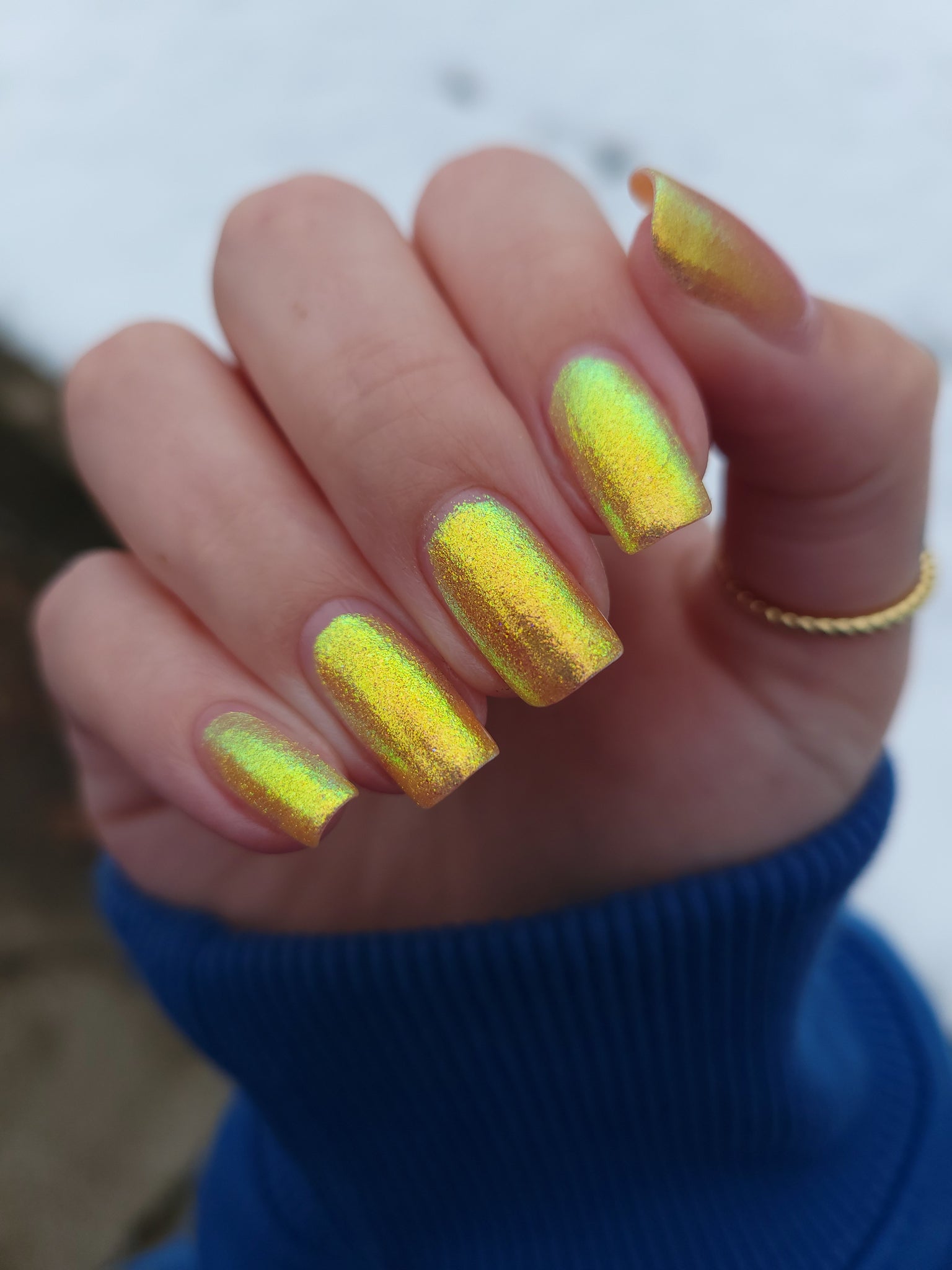 honey blonde packed with golden/copper/green shifting shimmer