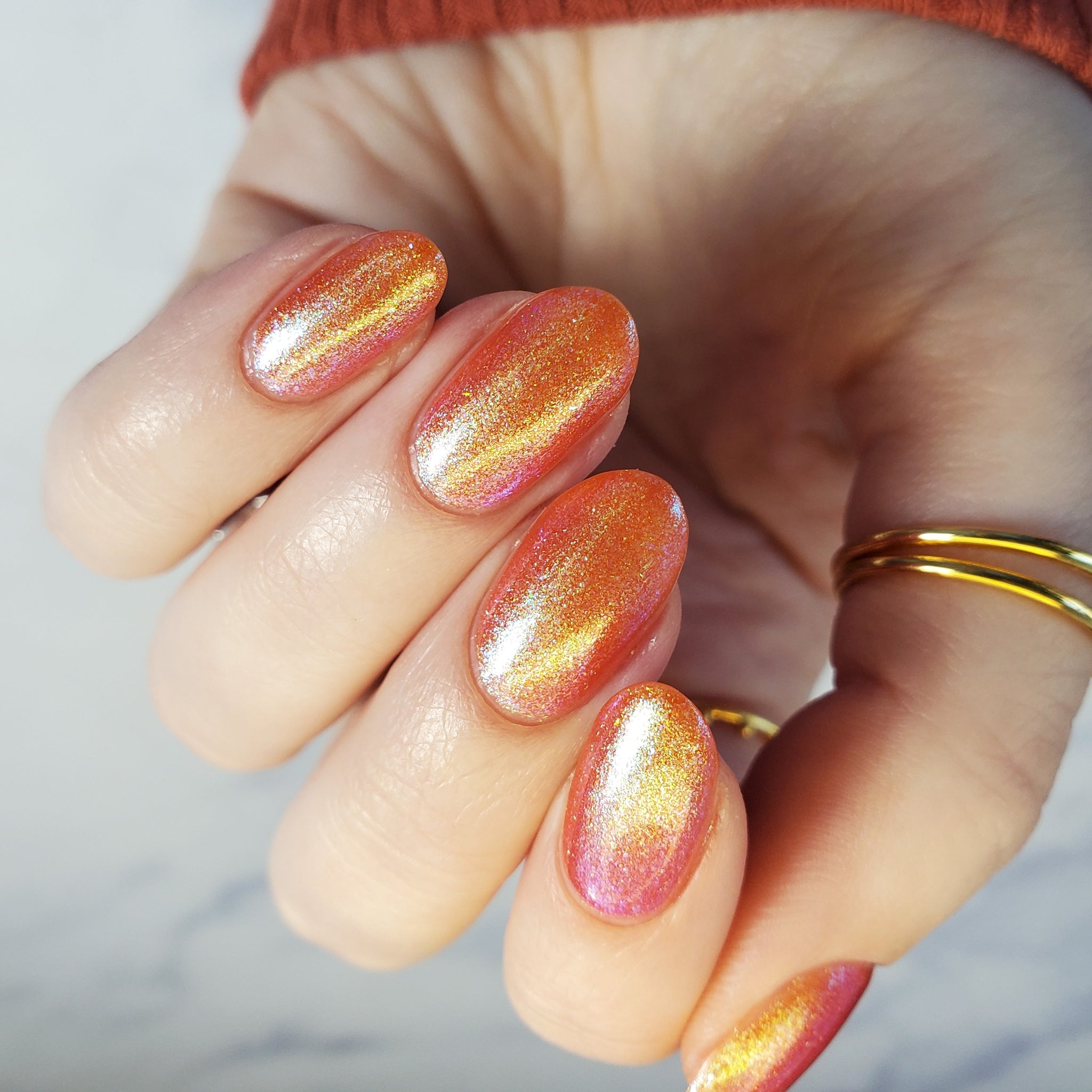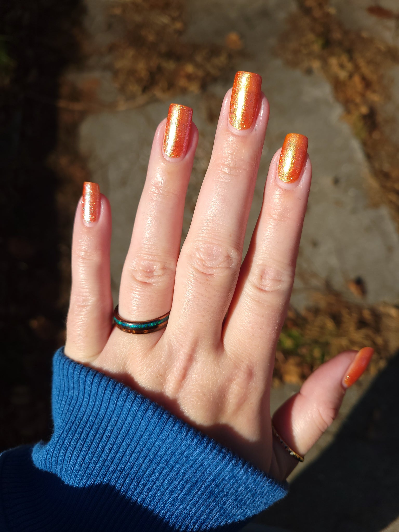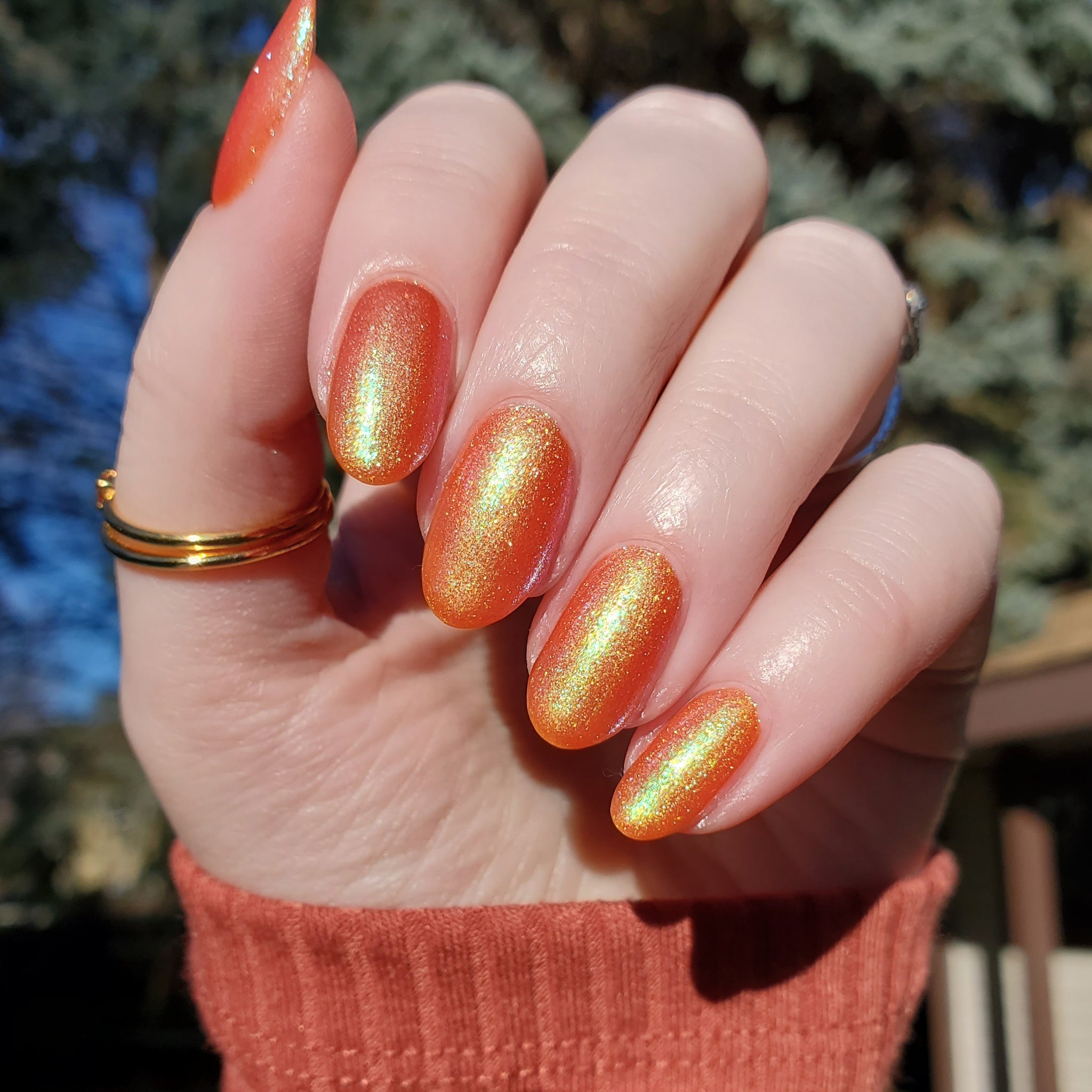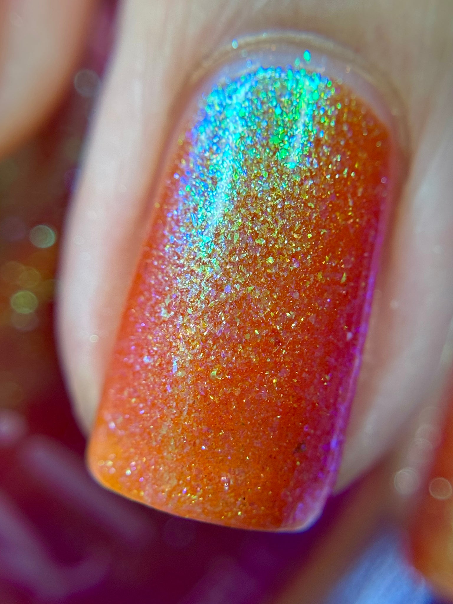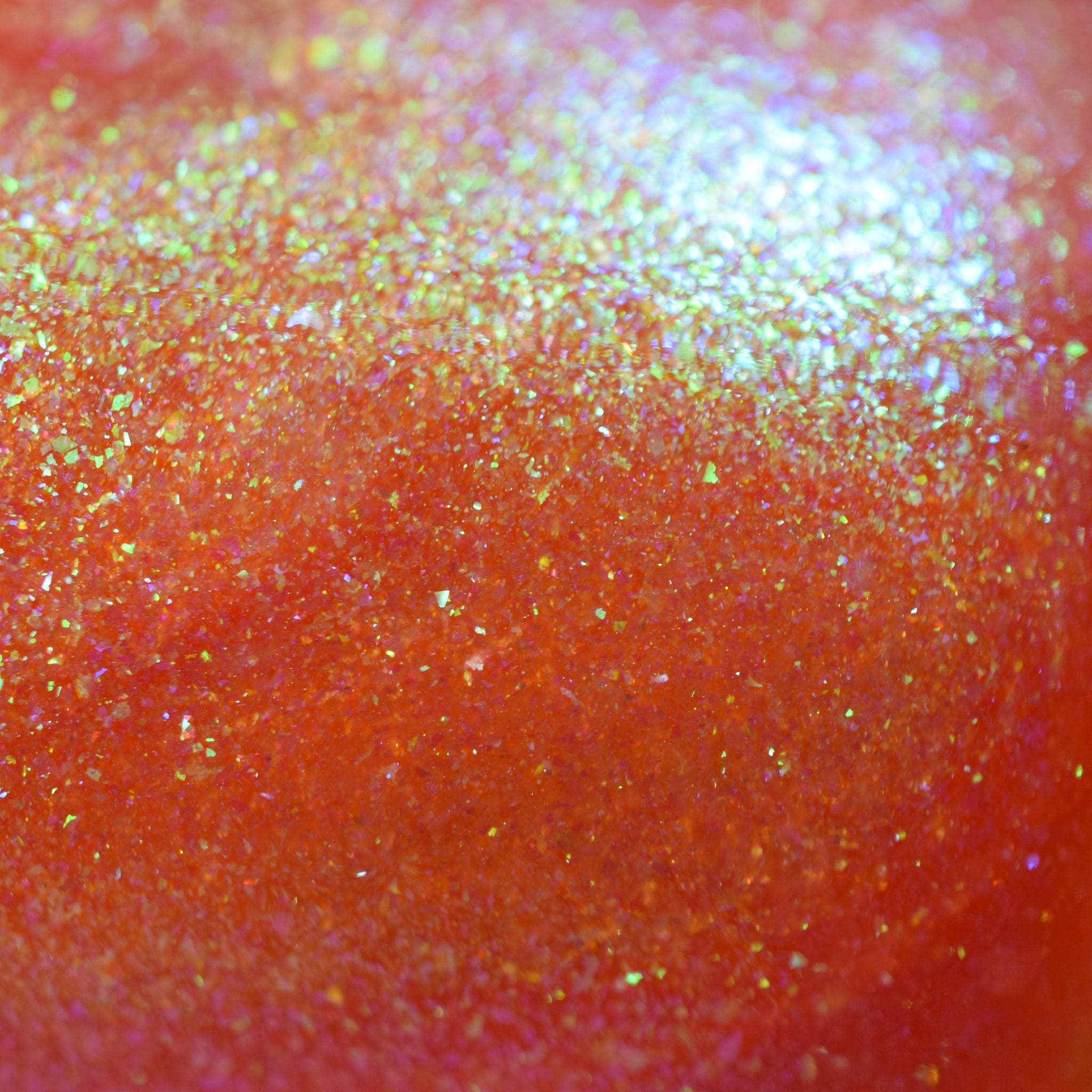 sheer tangerine orange packed with aqua/green/blue shifting shimmer