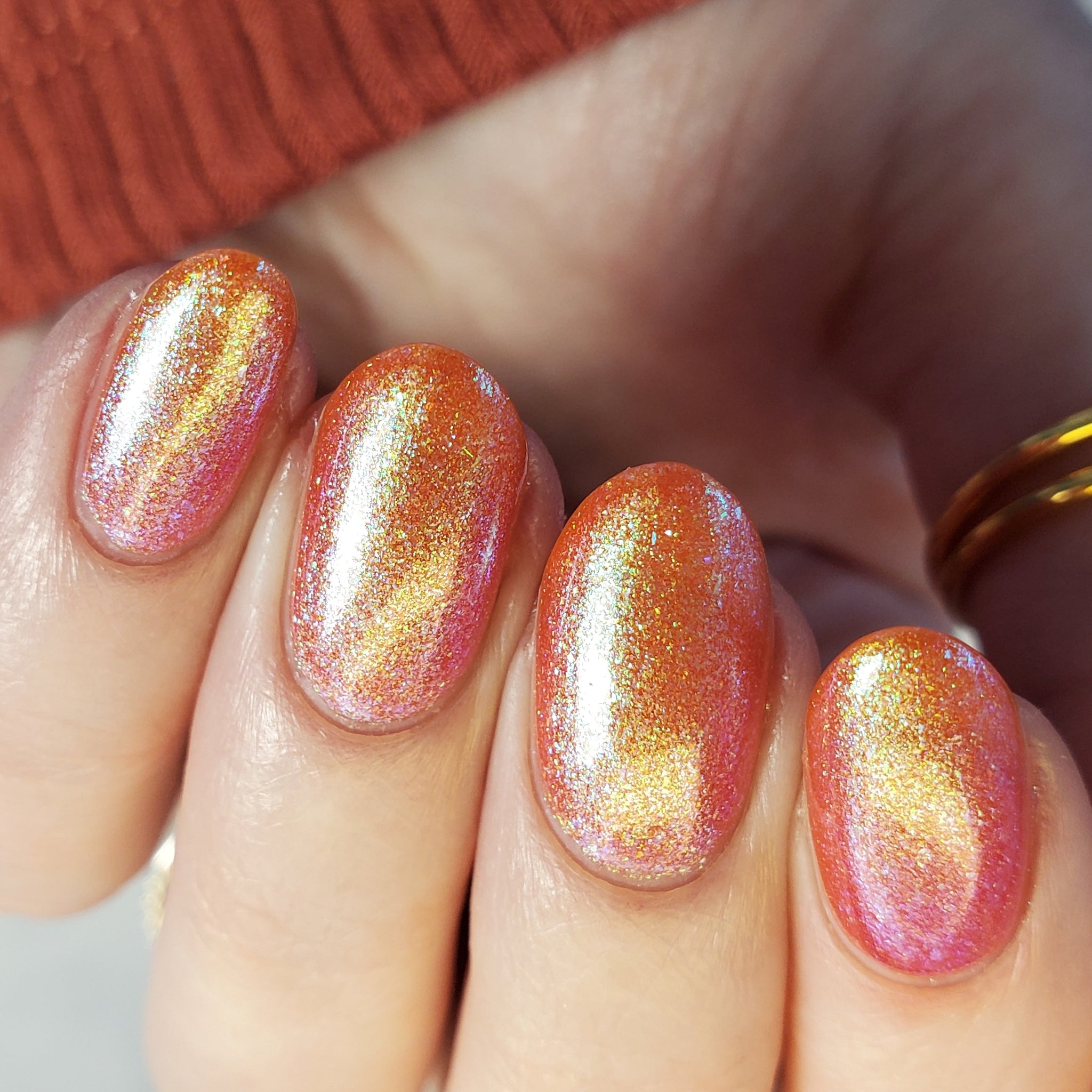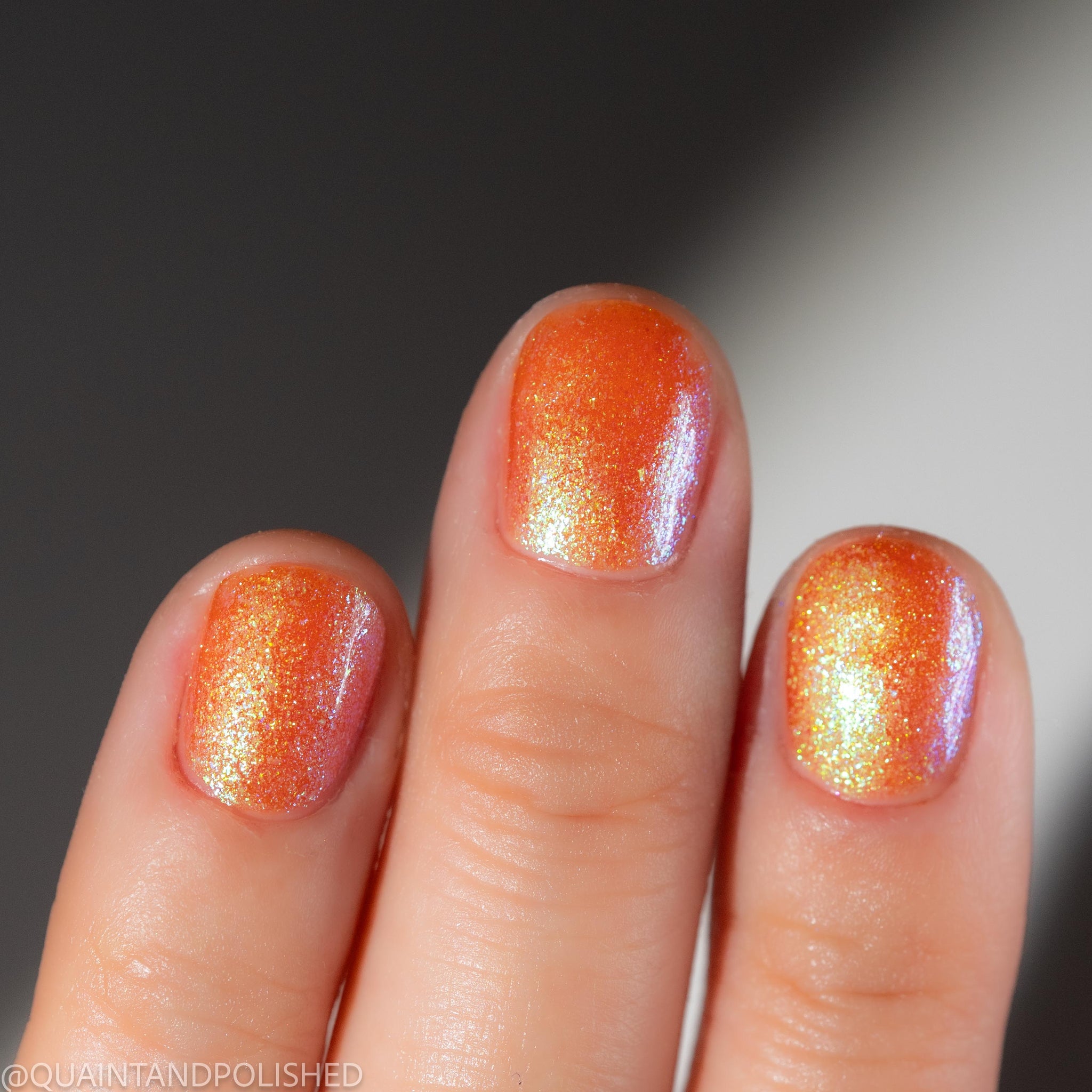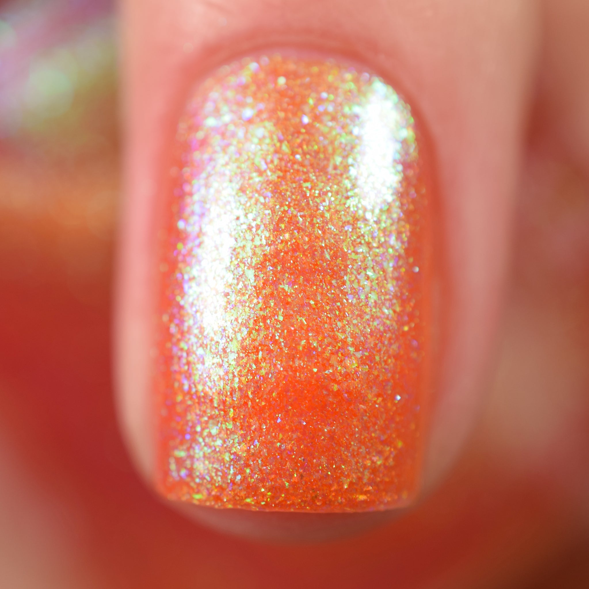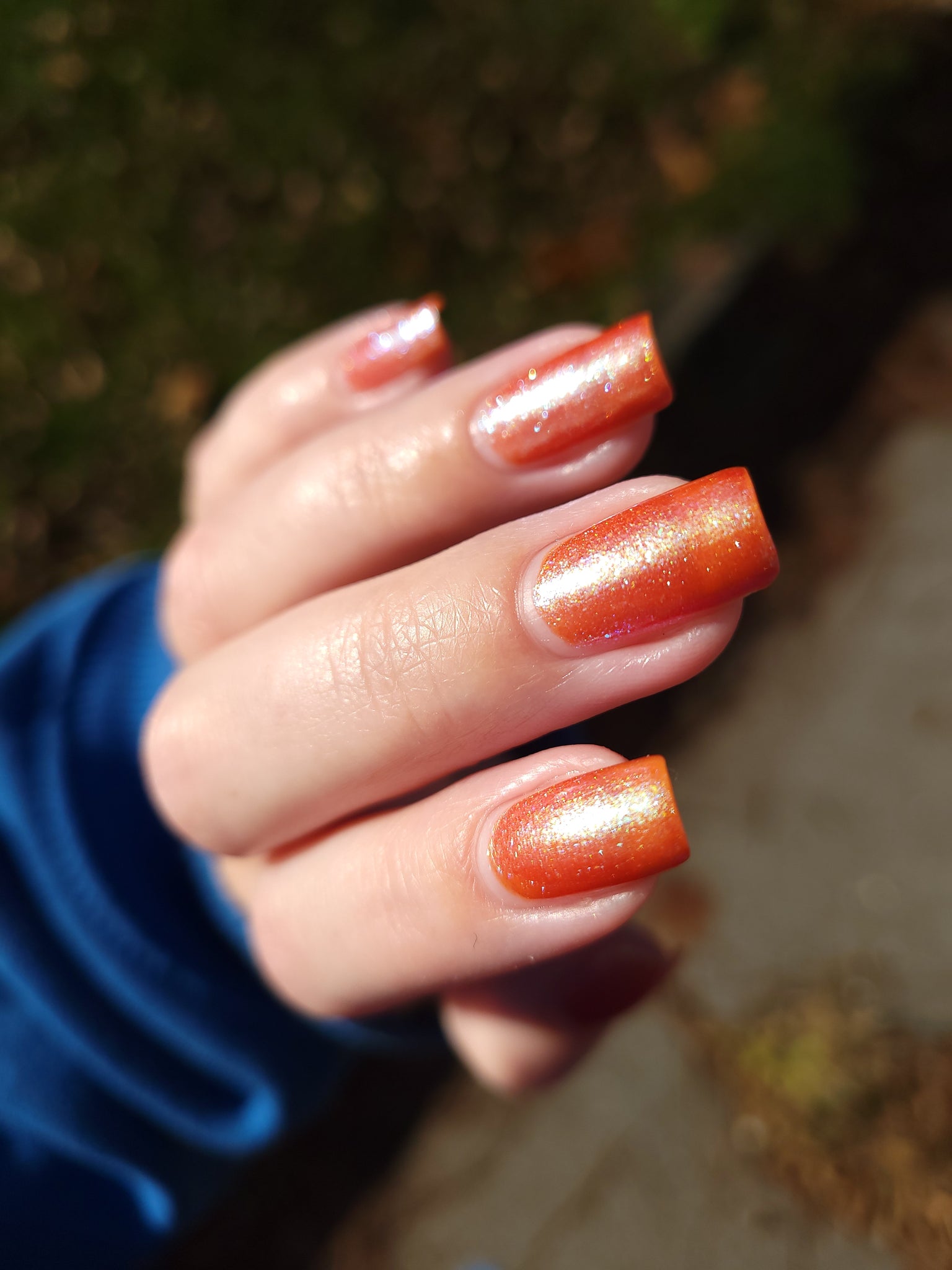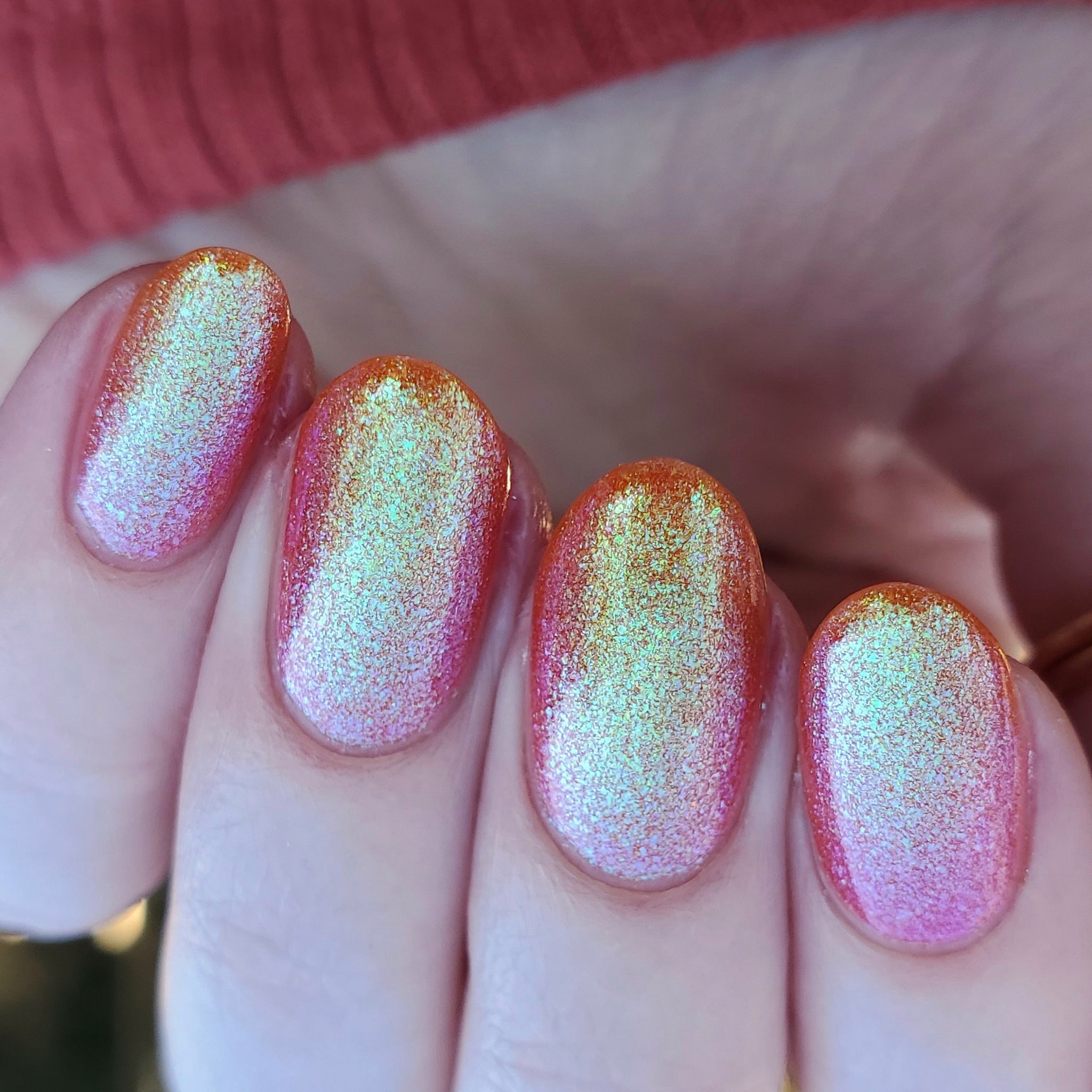 sheer tangerine orange packed with aqua/green/blue shifting shimmer