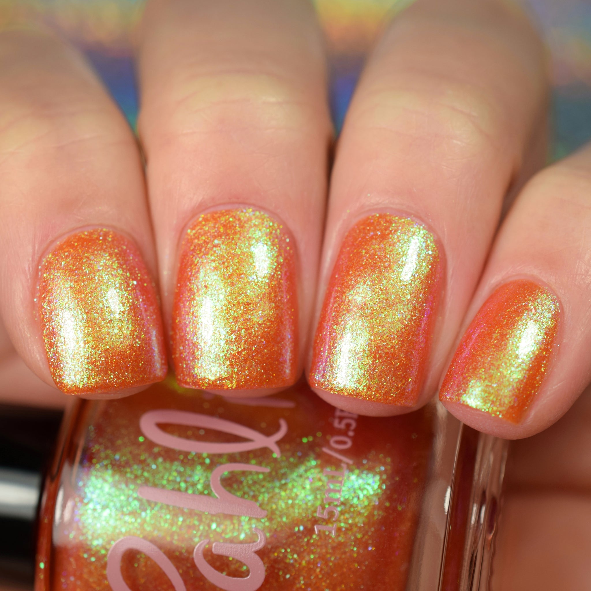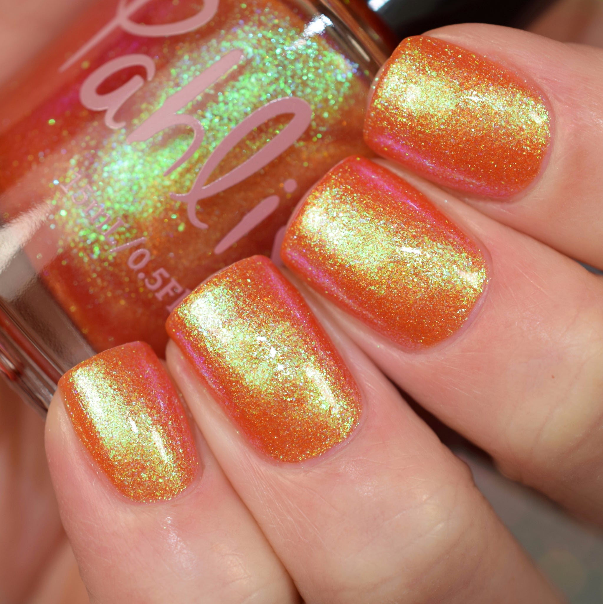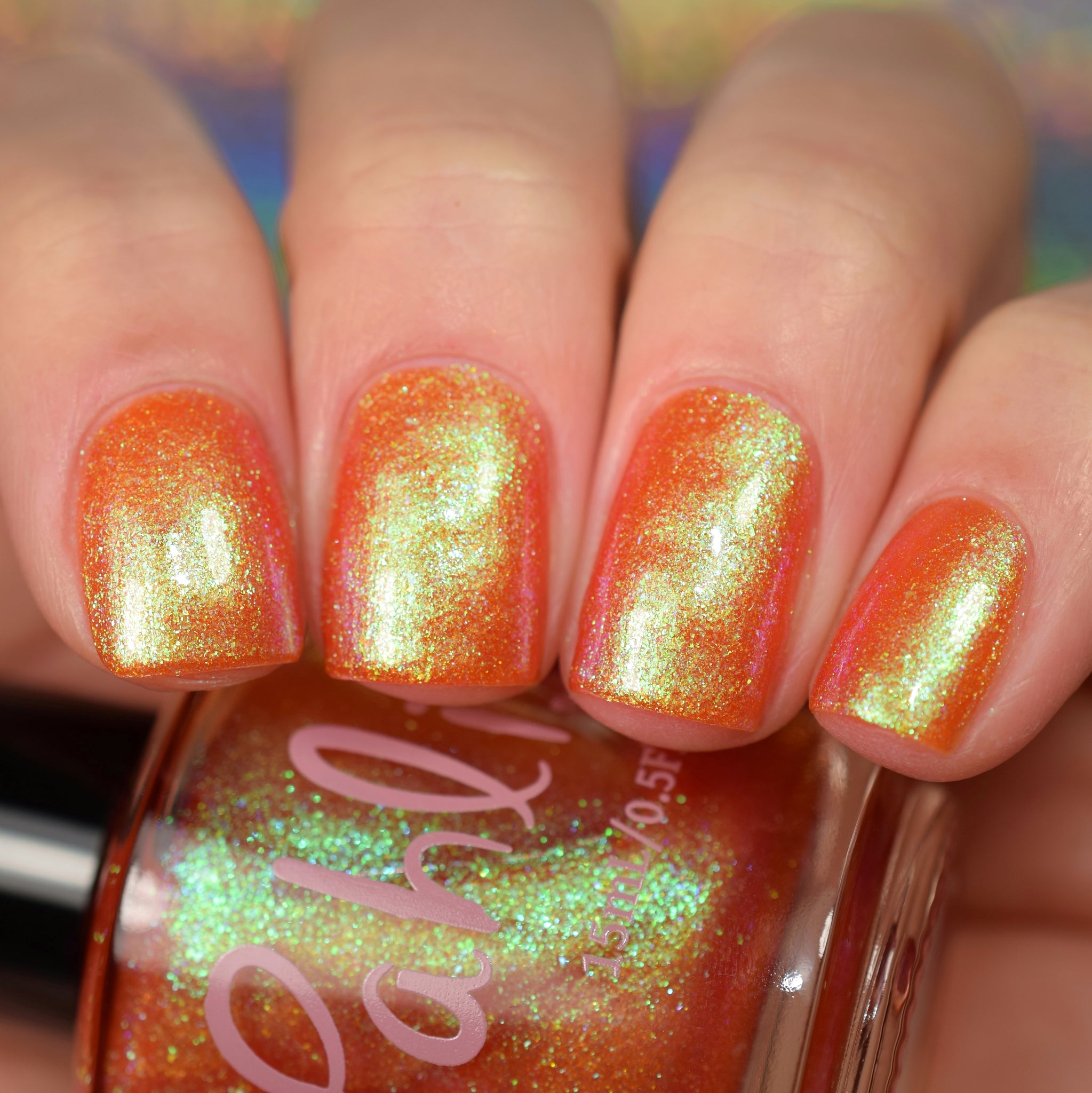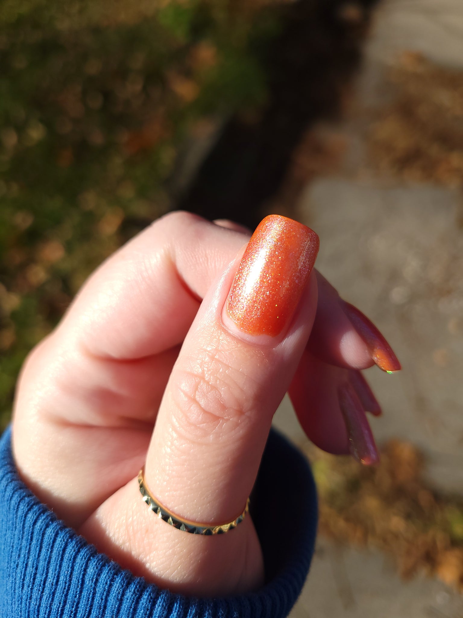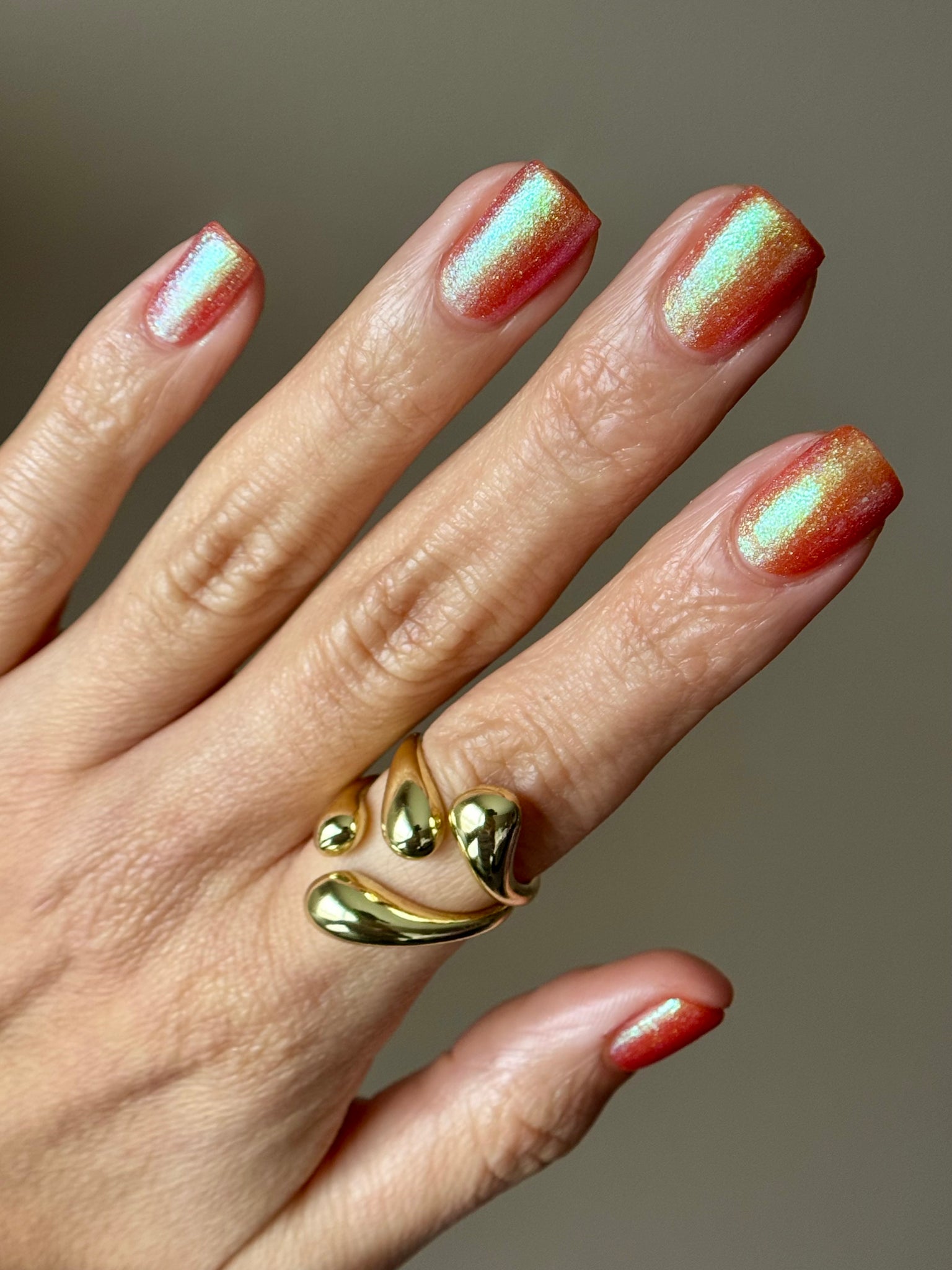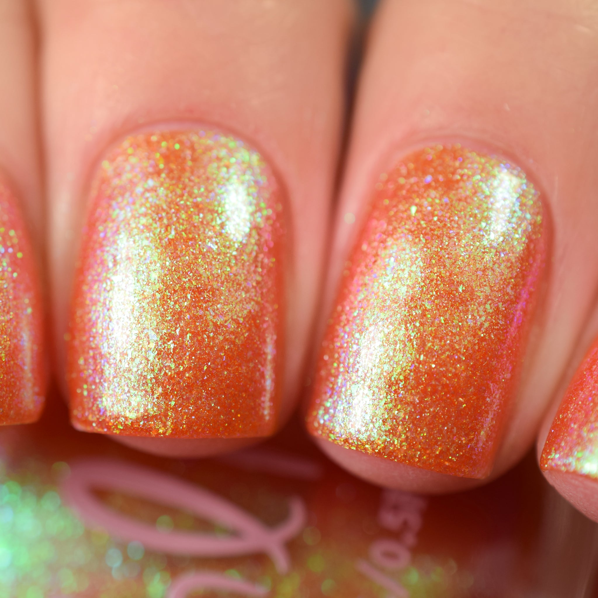 sheer tangerine orange packed with aqua/green/blue shifting shimmer