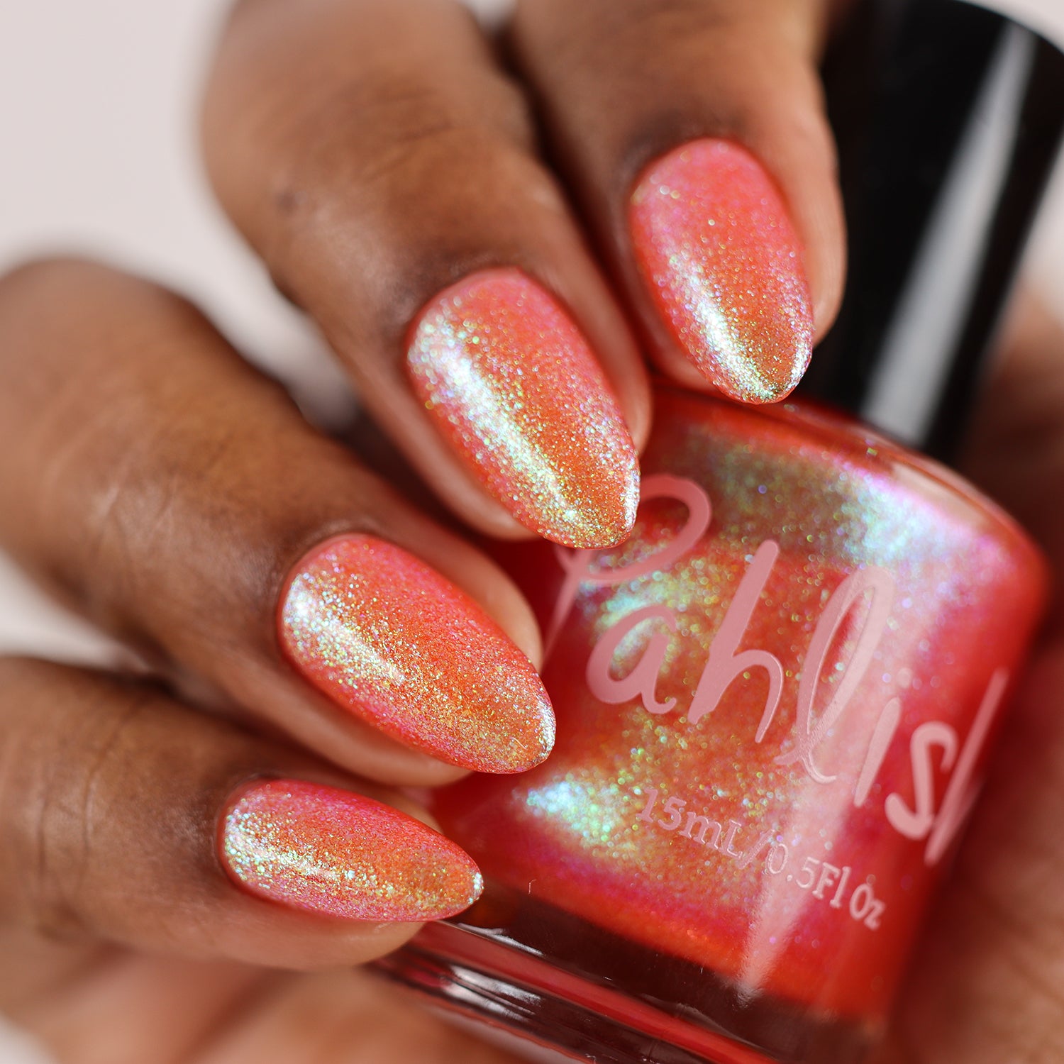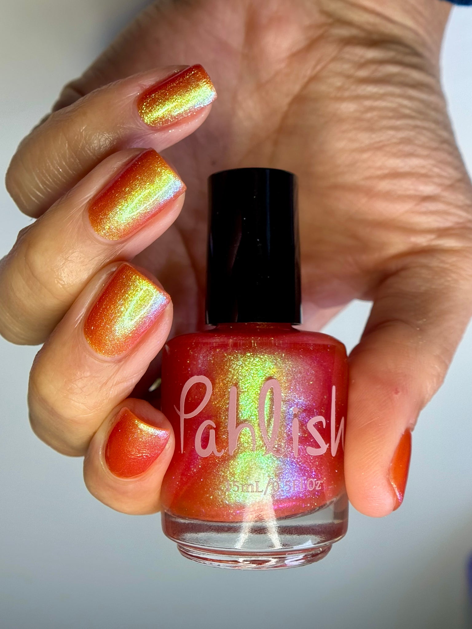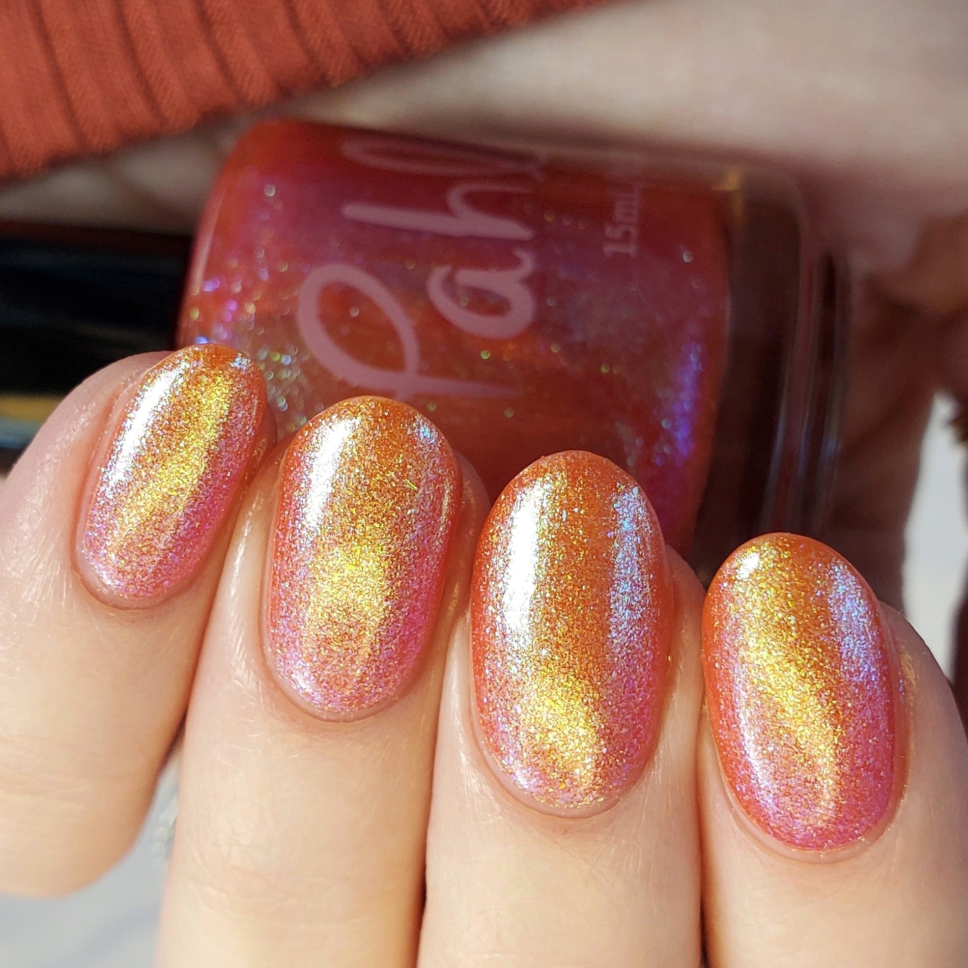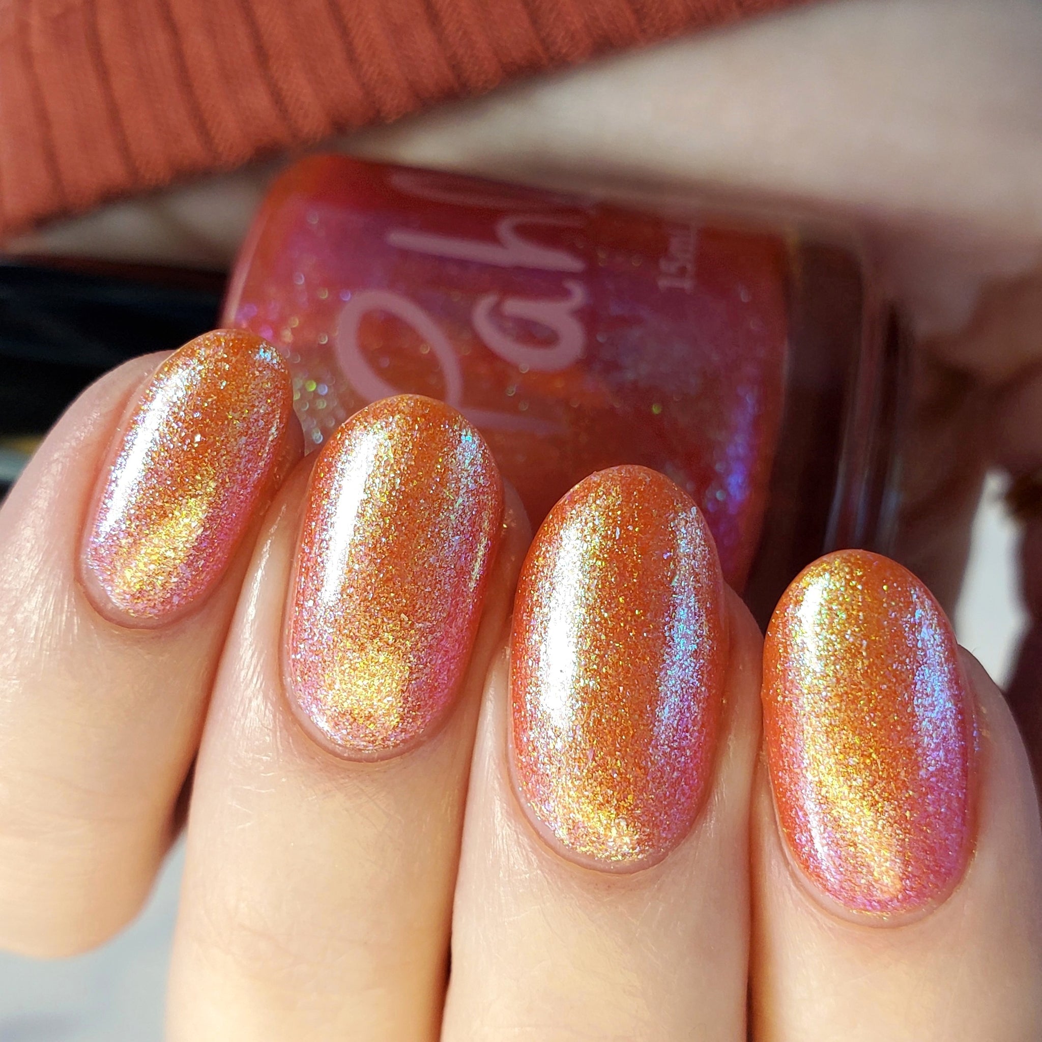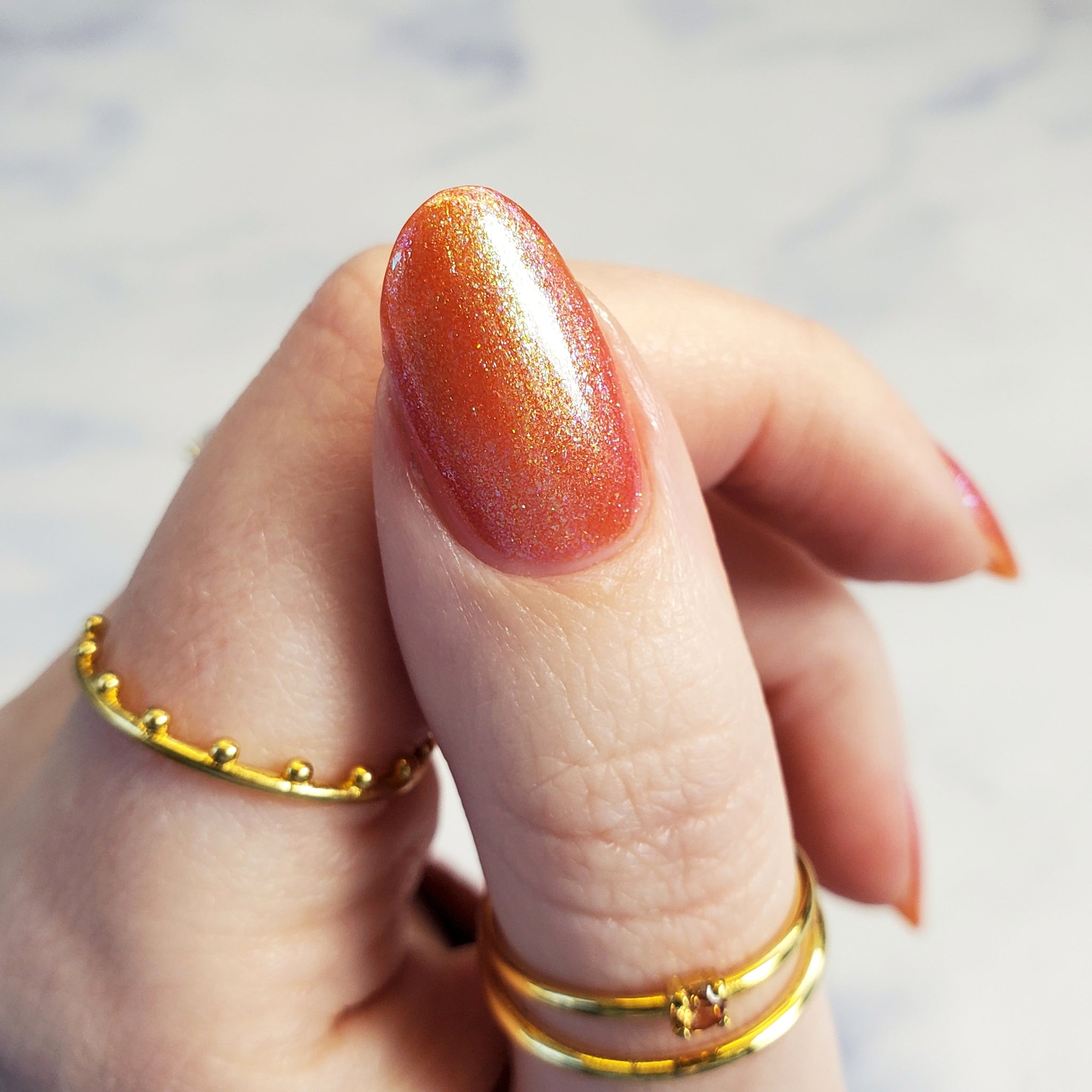 sheer tangerine orange packed with aqua/green/blue shifting shimmer