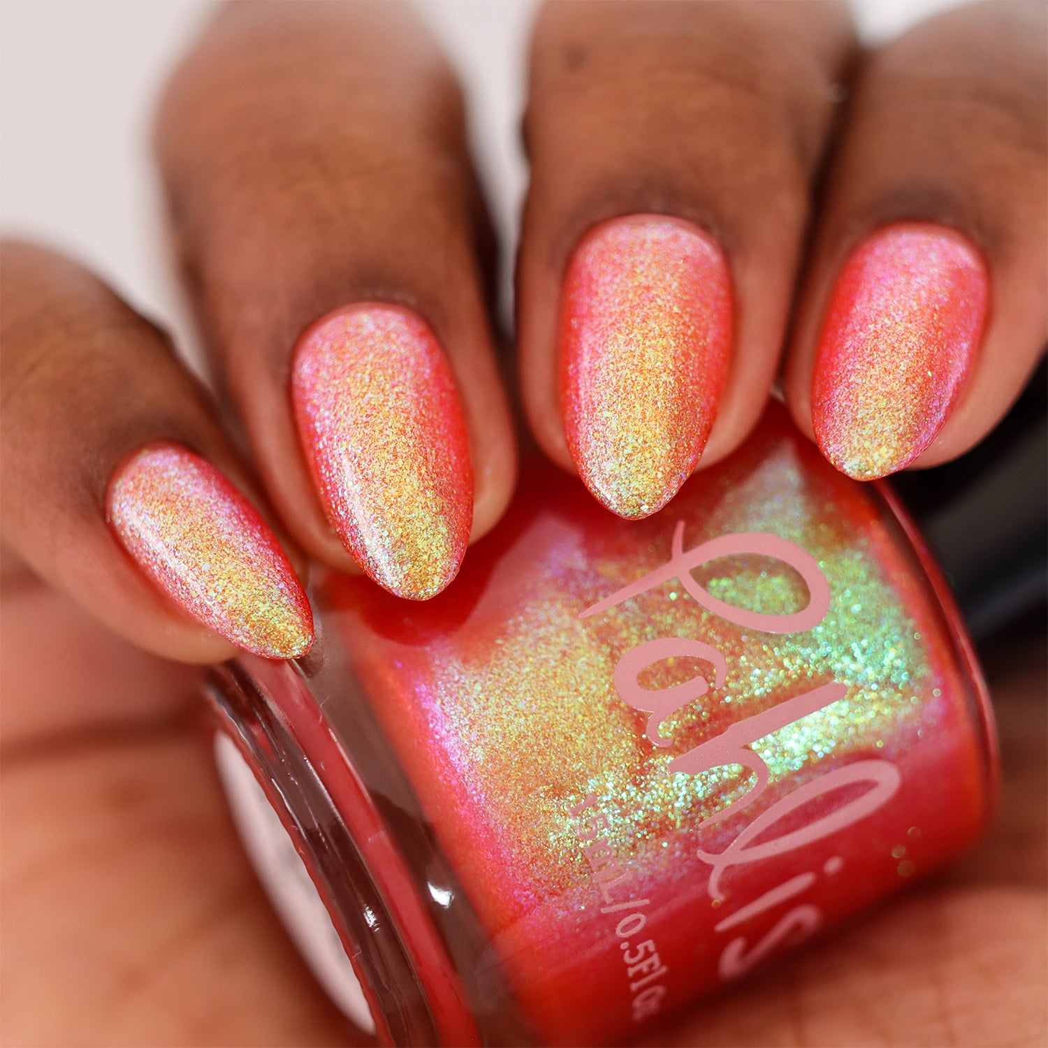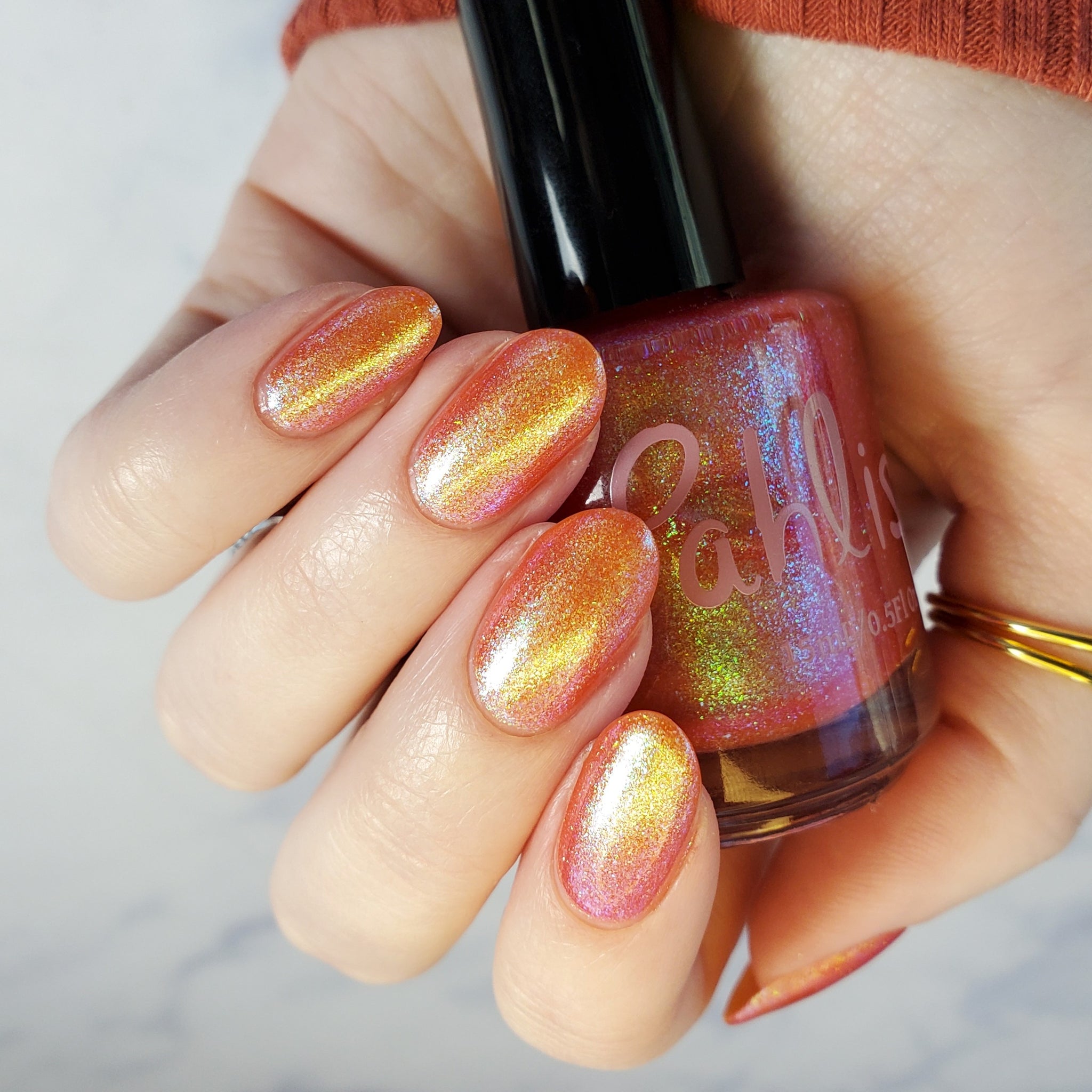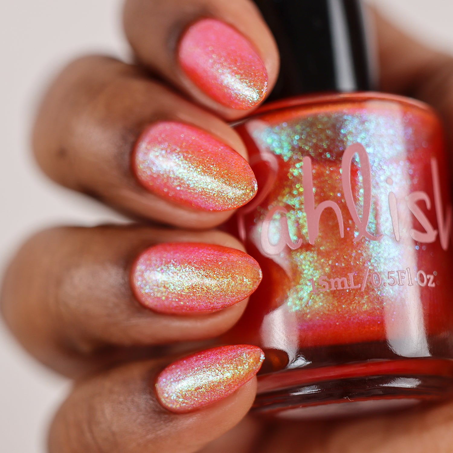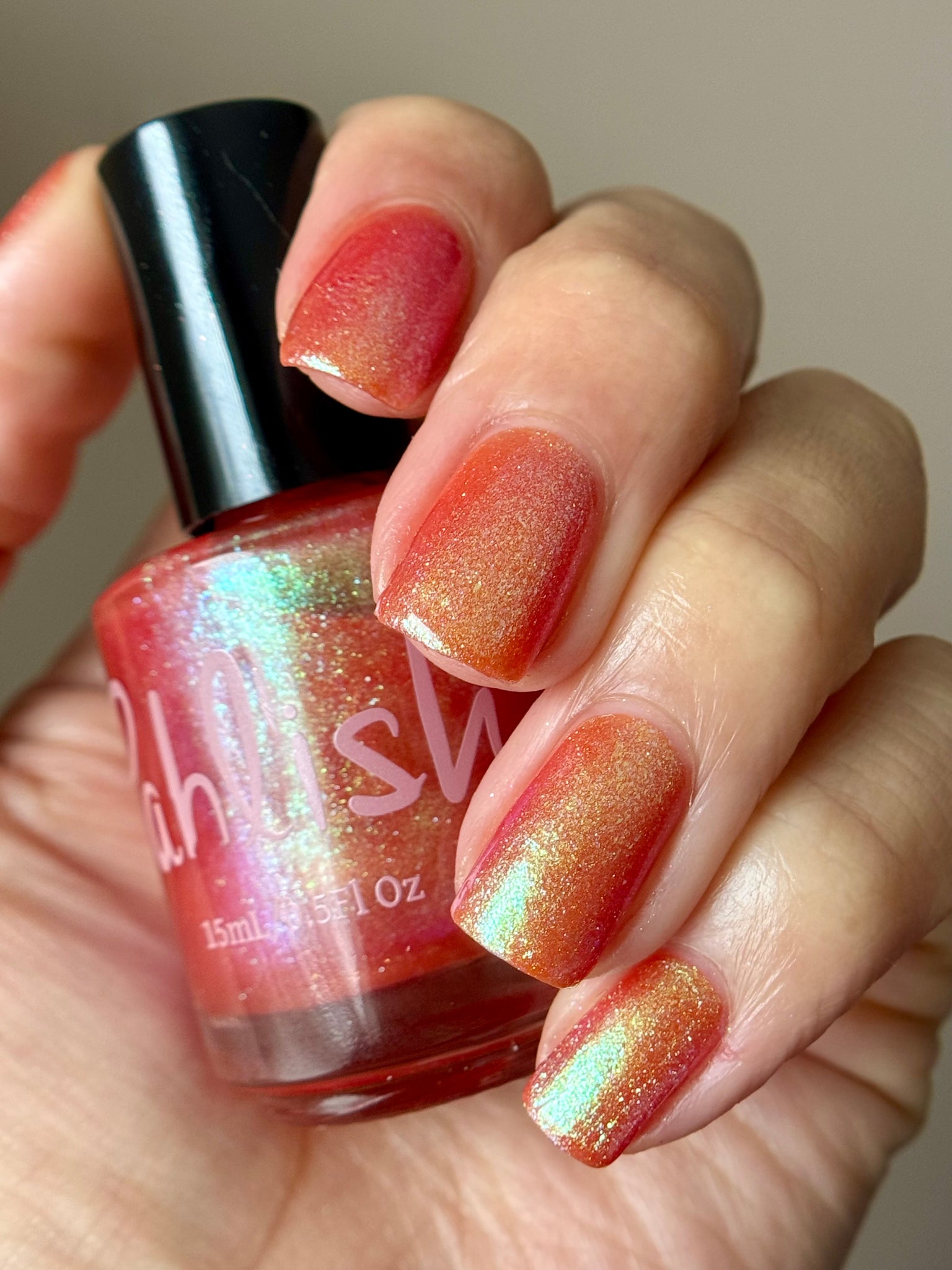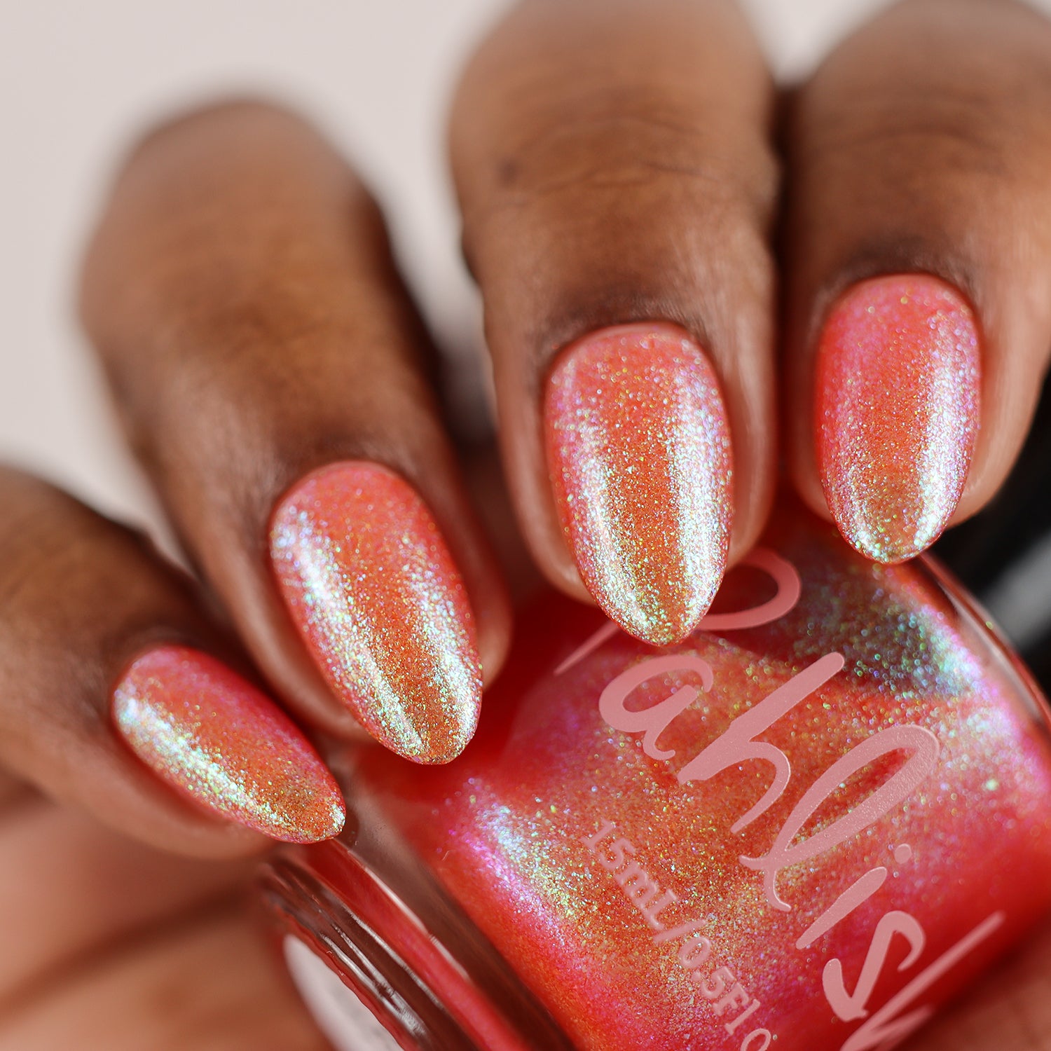 sheer tangerine orange packed with aqua/green/blue shifting shimmer