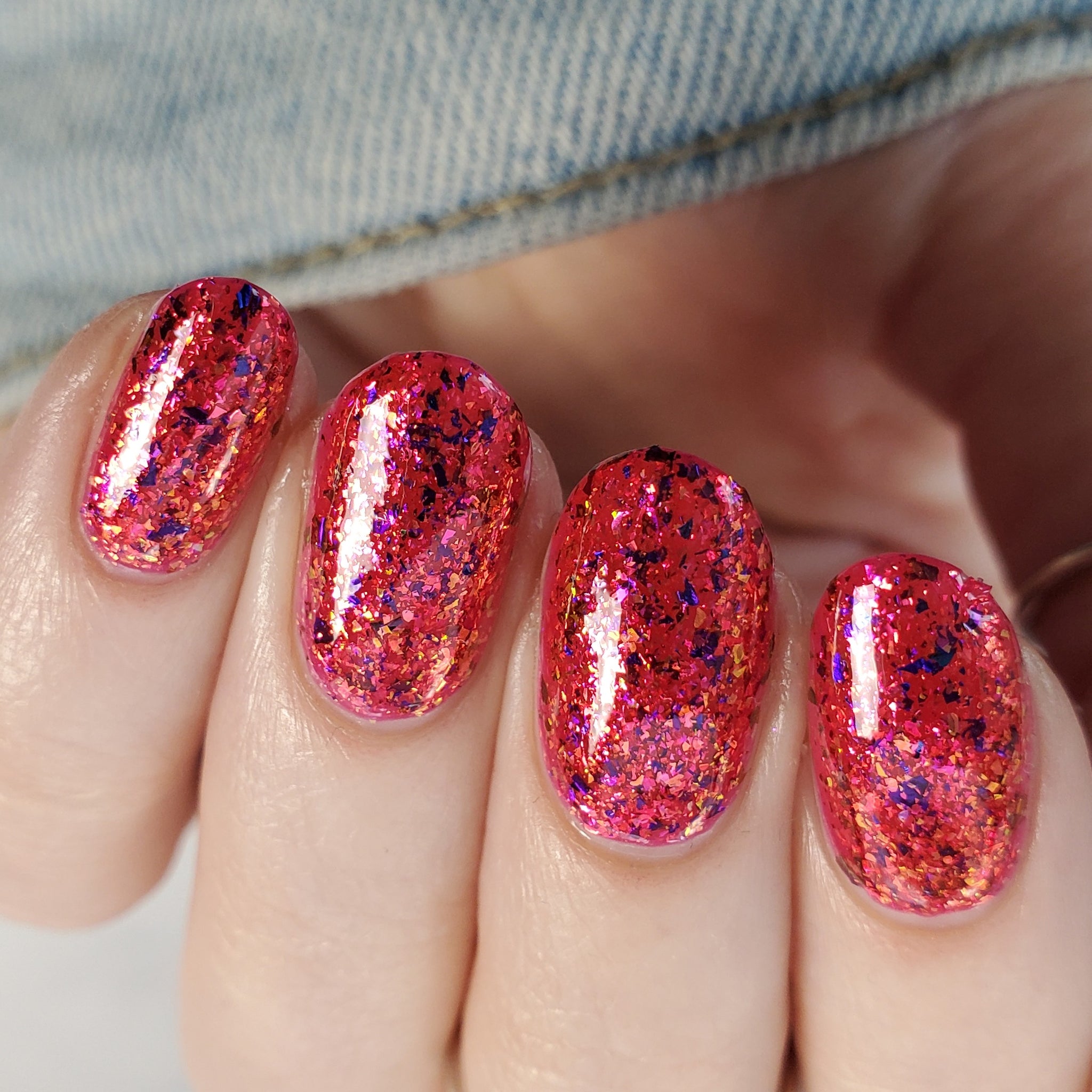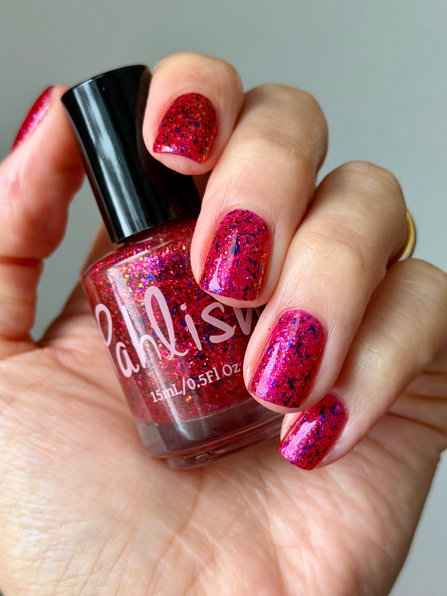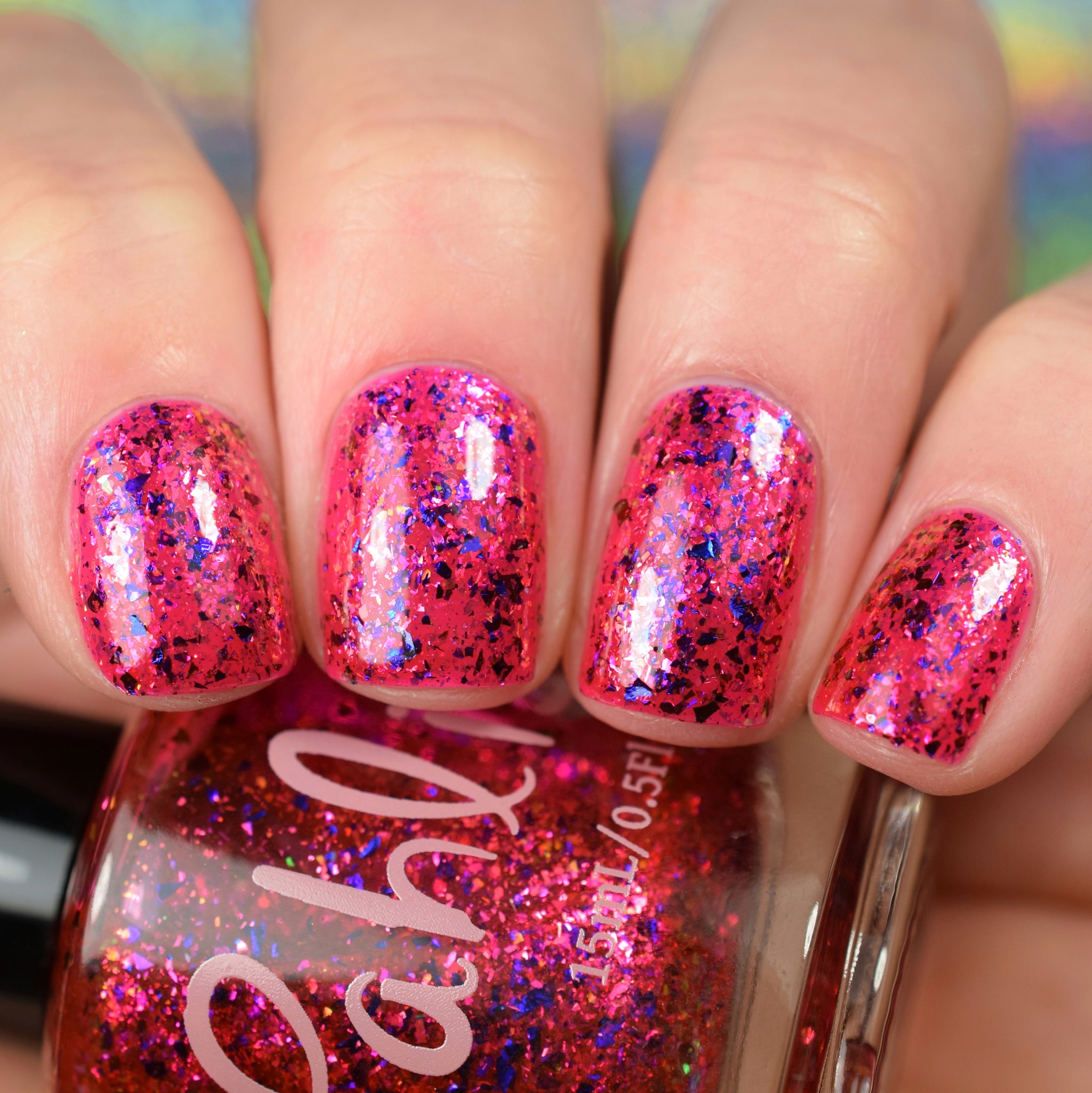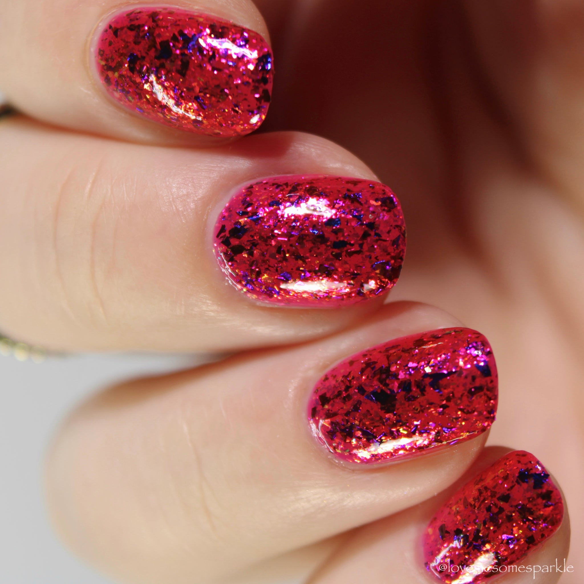 juicy raspberry pink packed with a mix of iridescent pink flakes and blue/pink metallic multichrome flakes