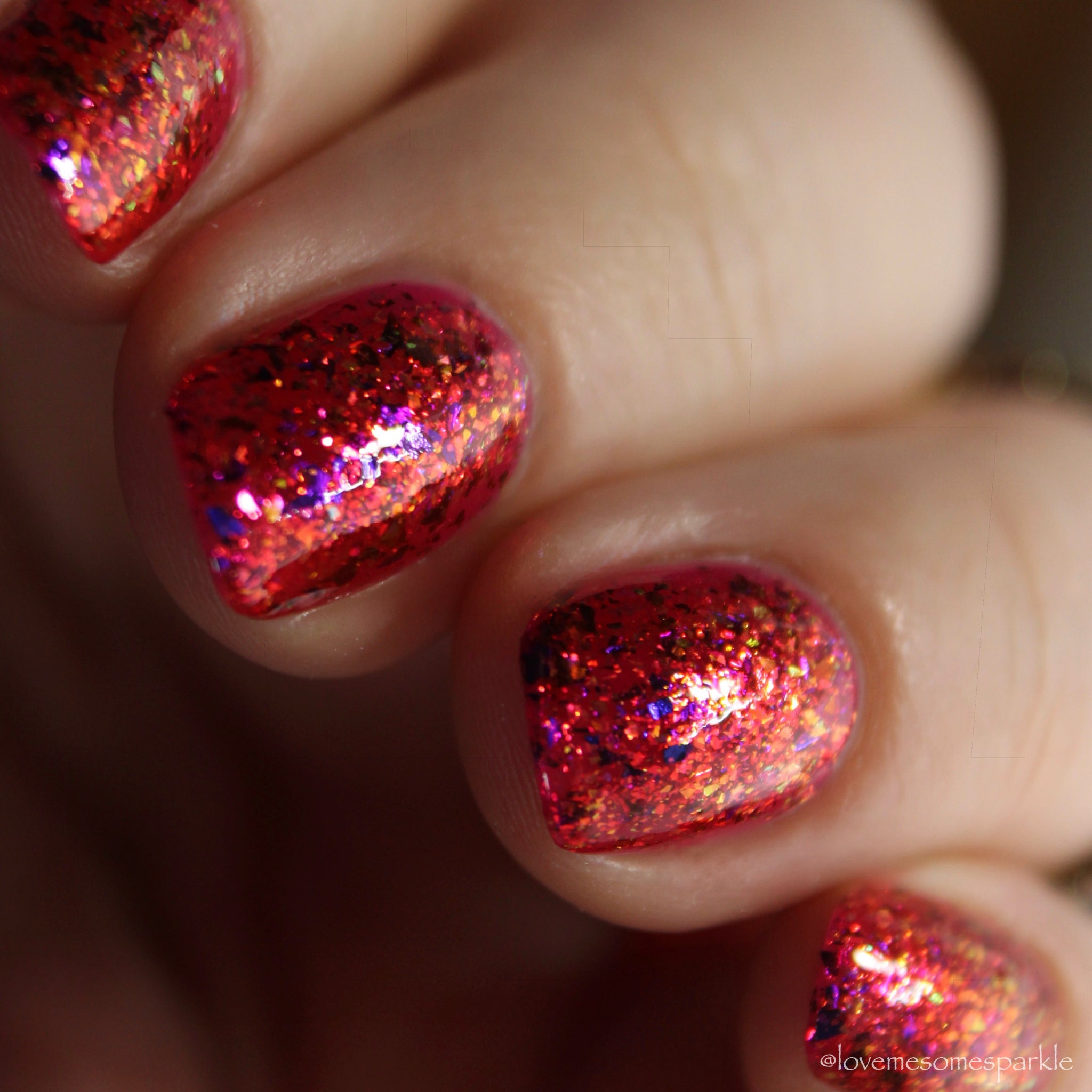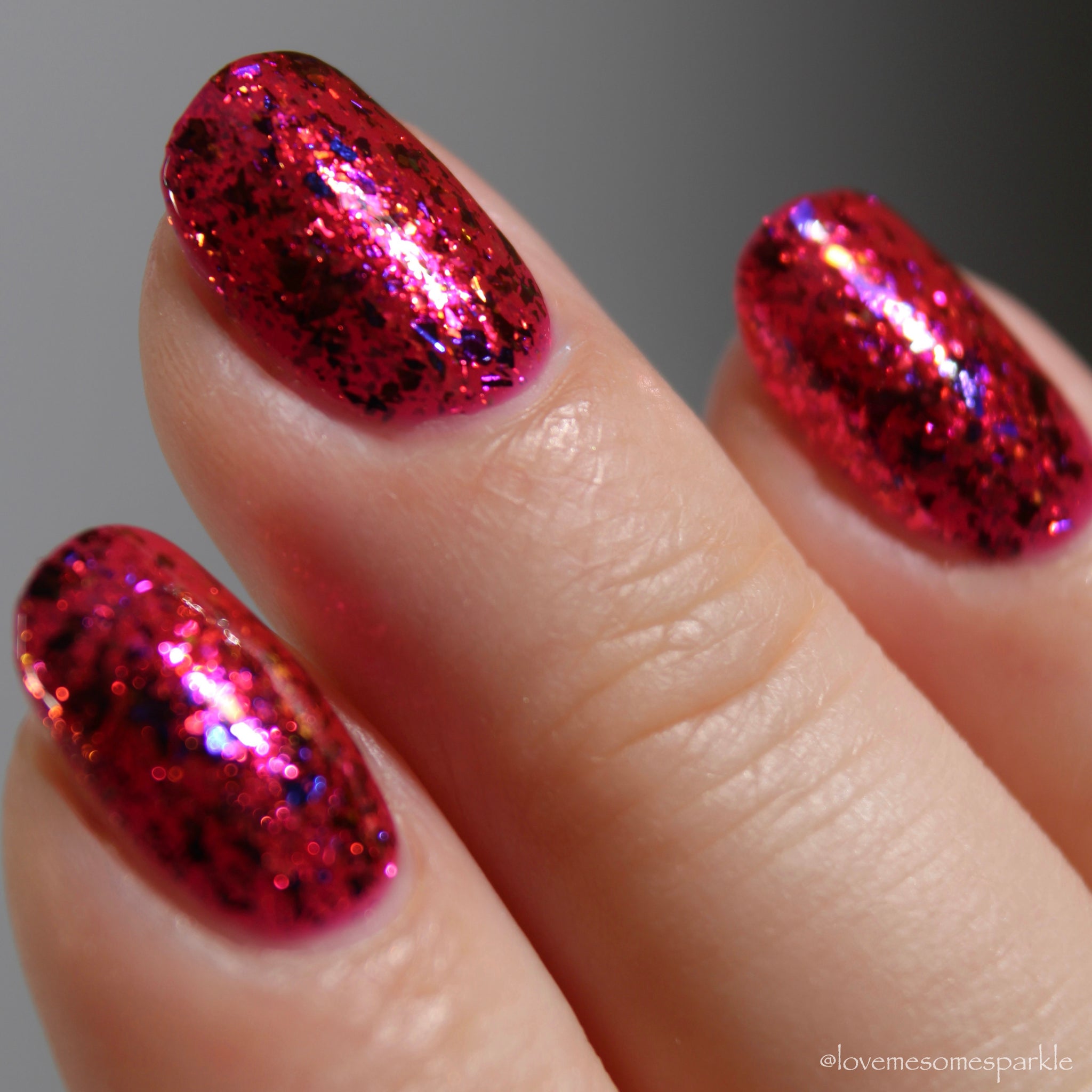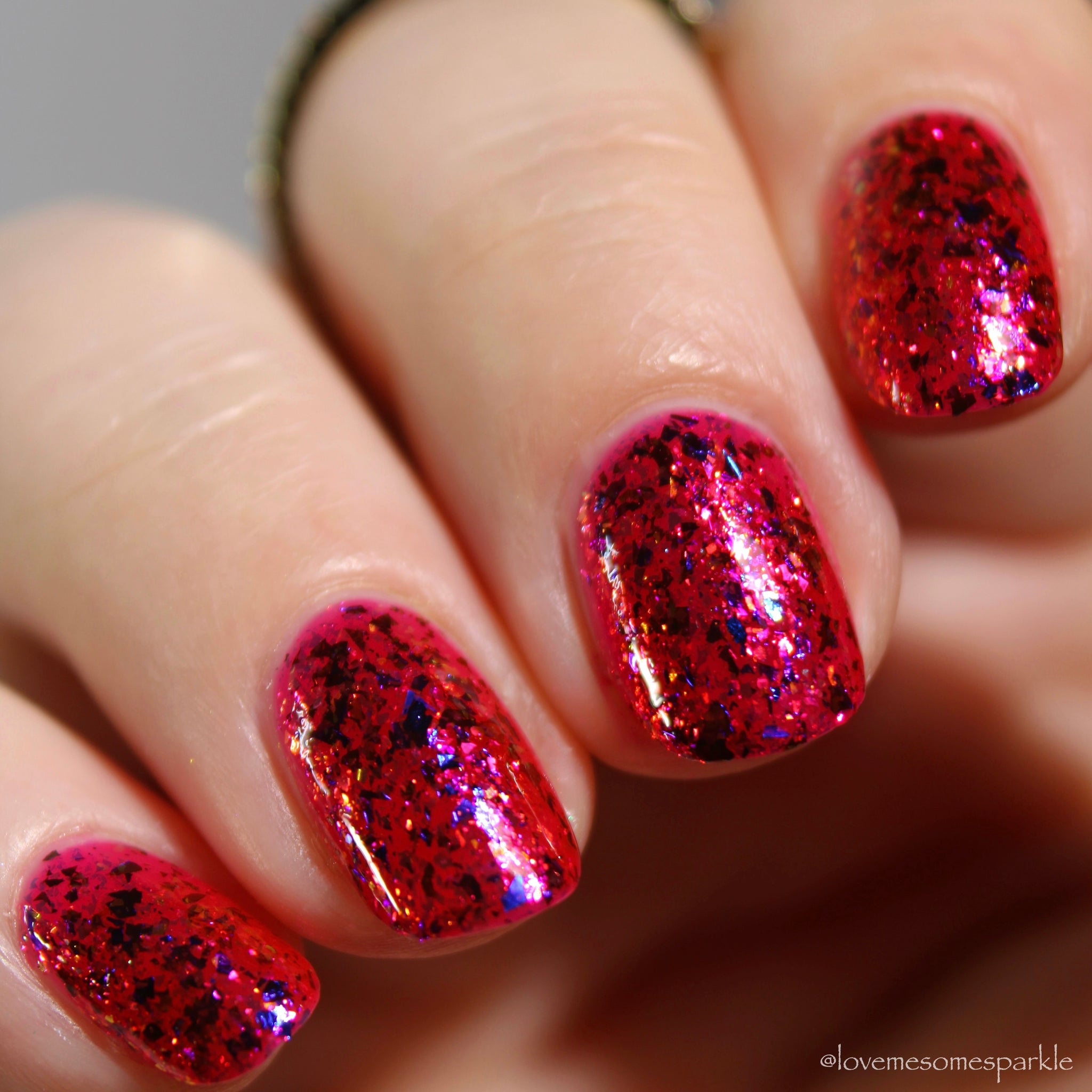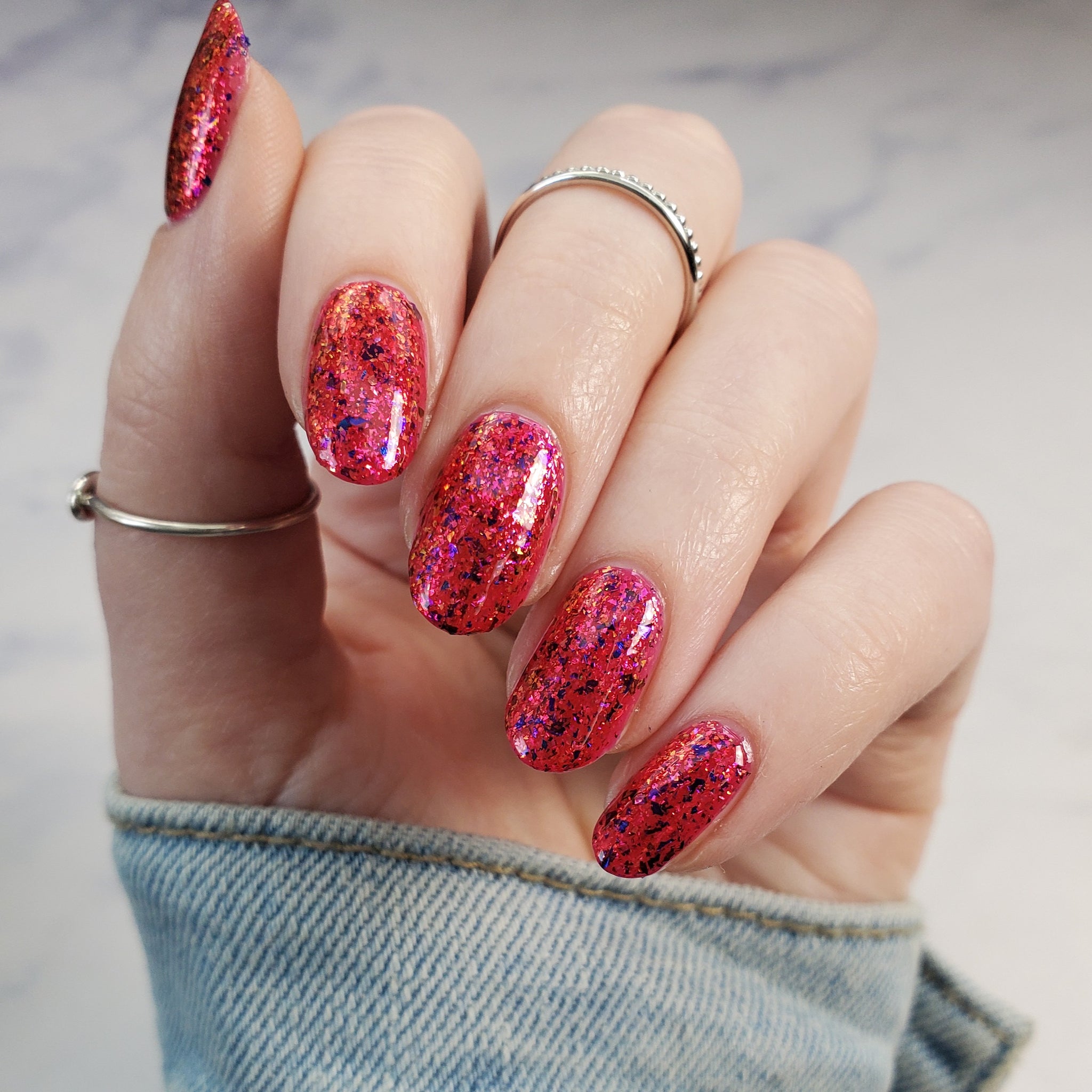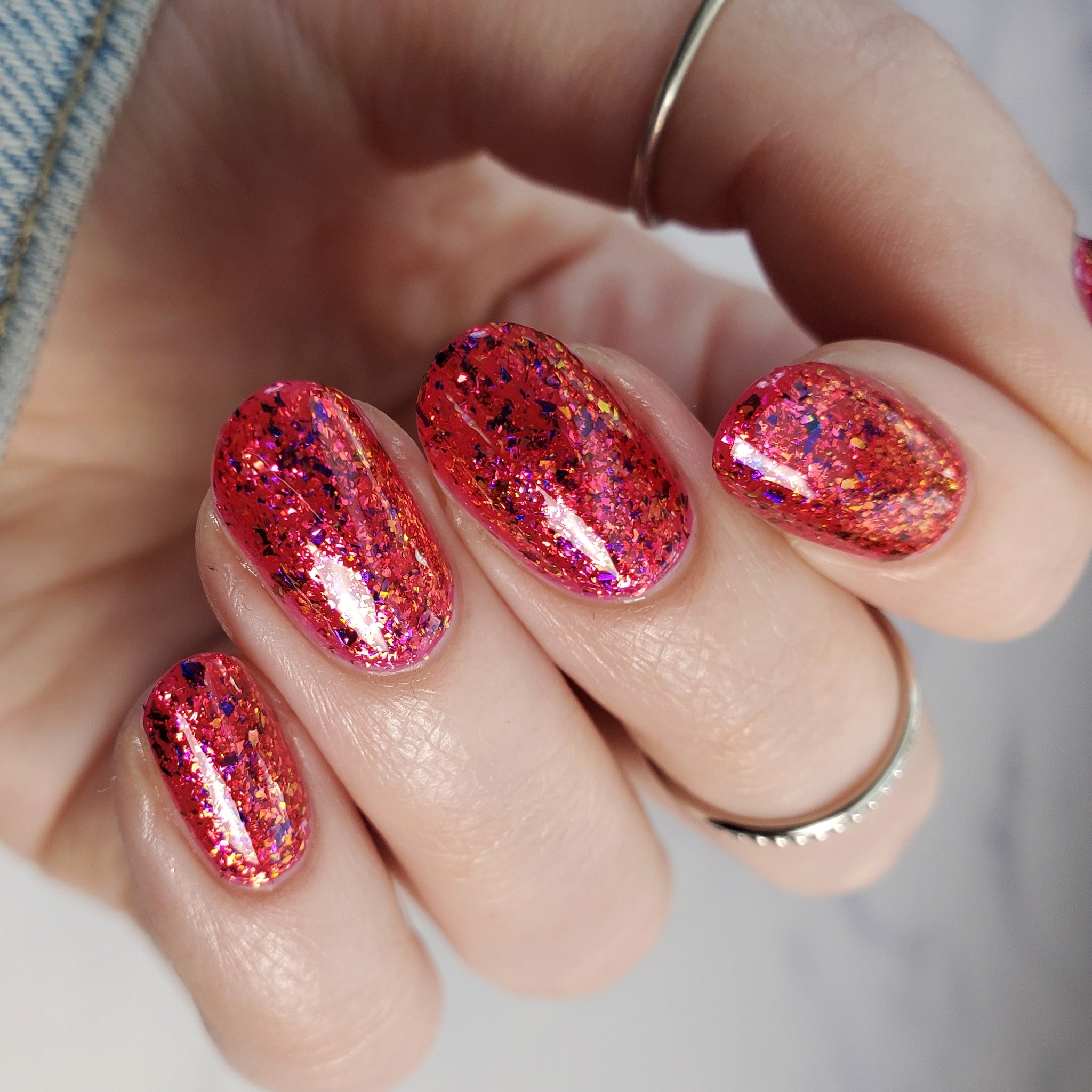 juicy raspberry pink packed with a mix of iridescent pink flakes and blue/pink metallic multichrome flakes