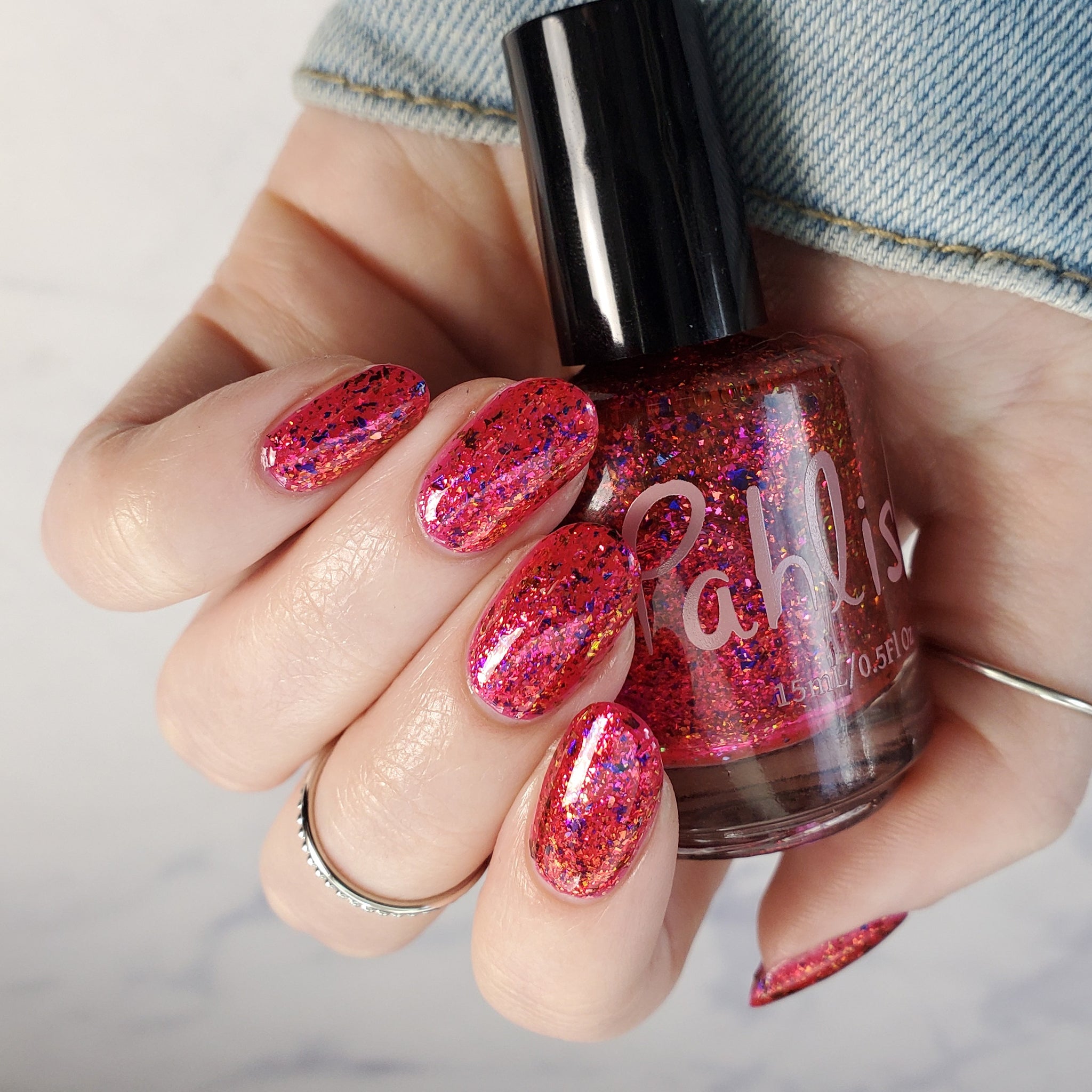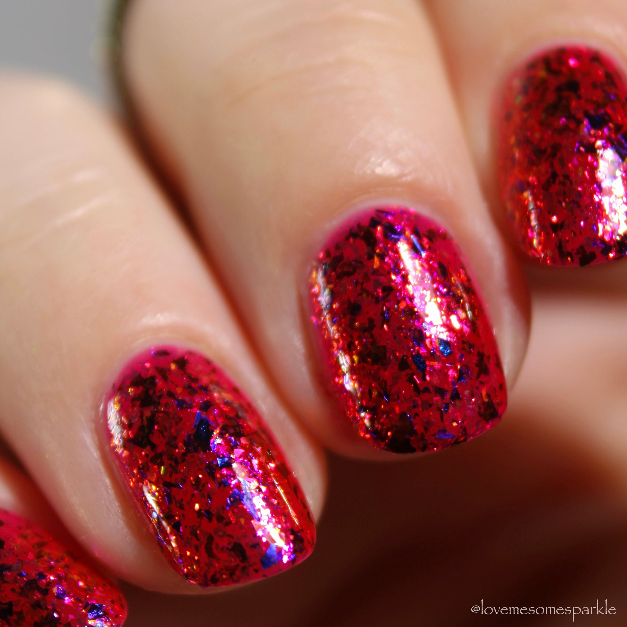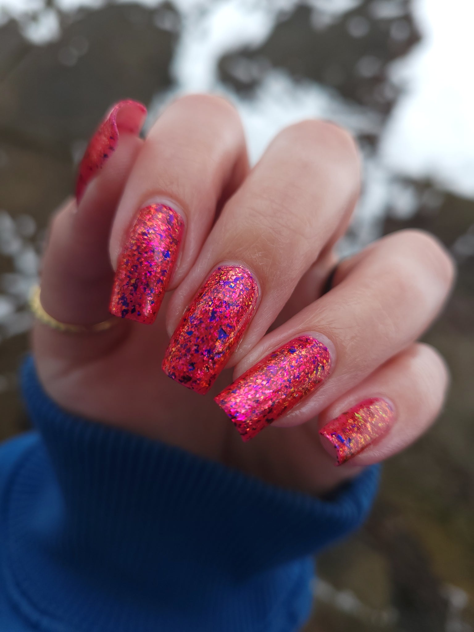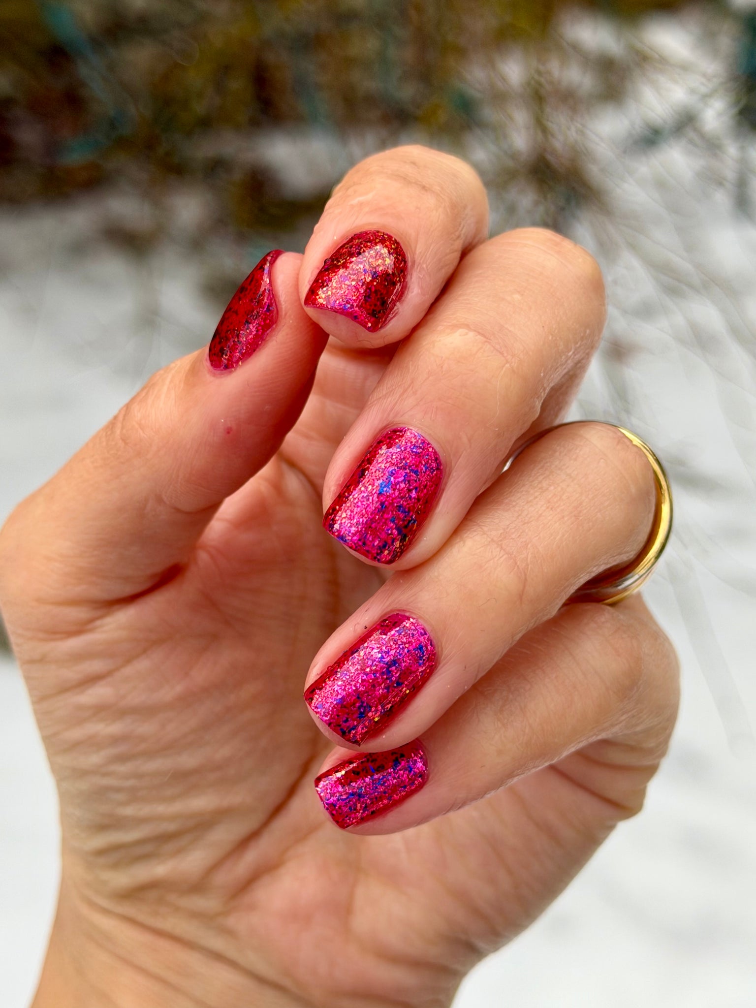 juicy raspberry pink packed with a mix of iridescent pink flakes and blue/pink metallic multichrome flakes