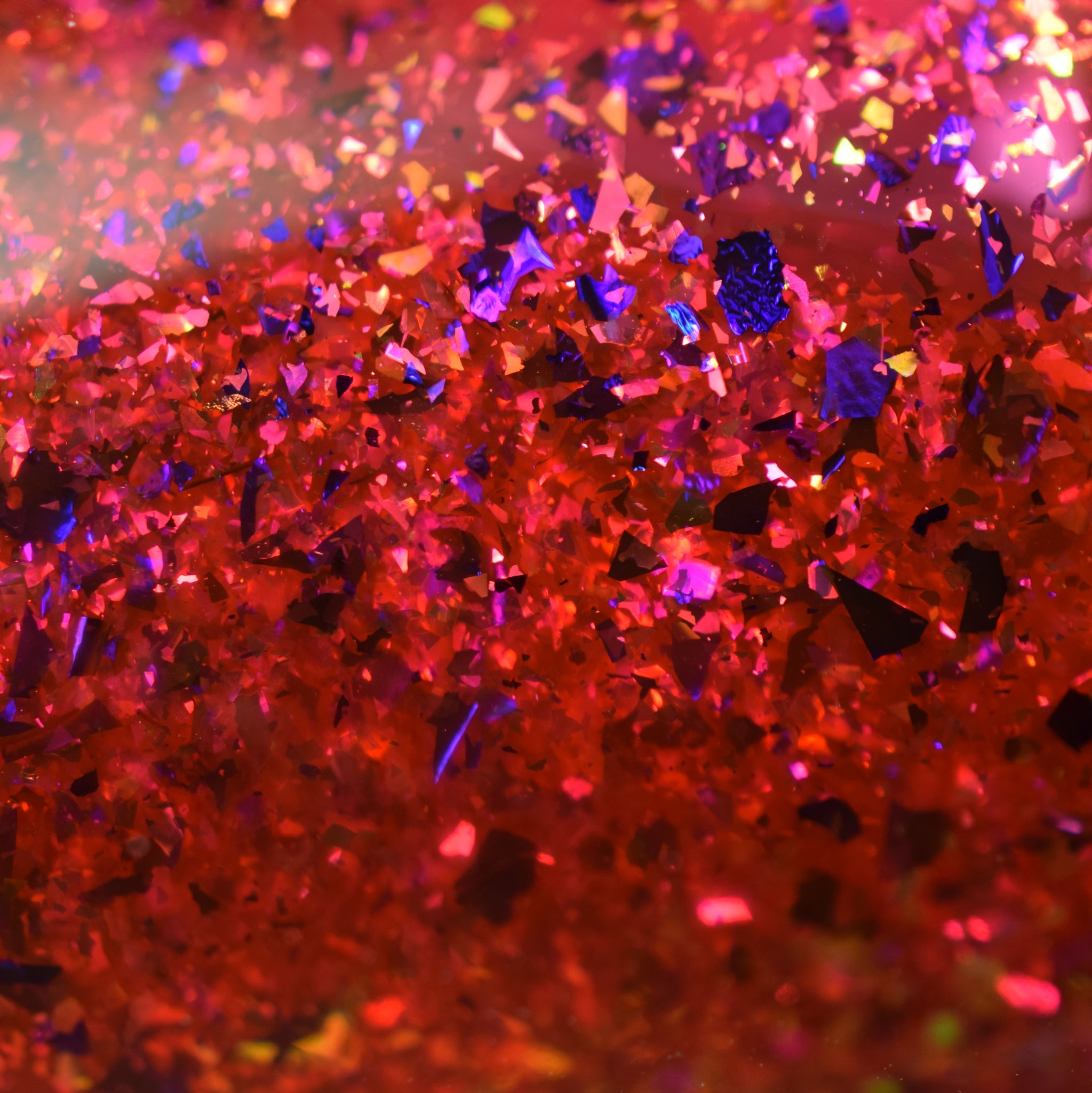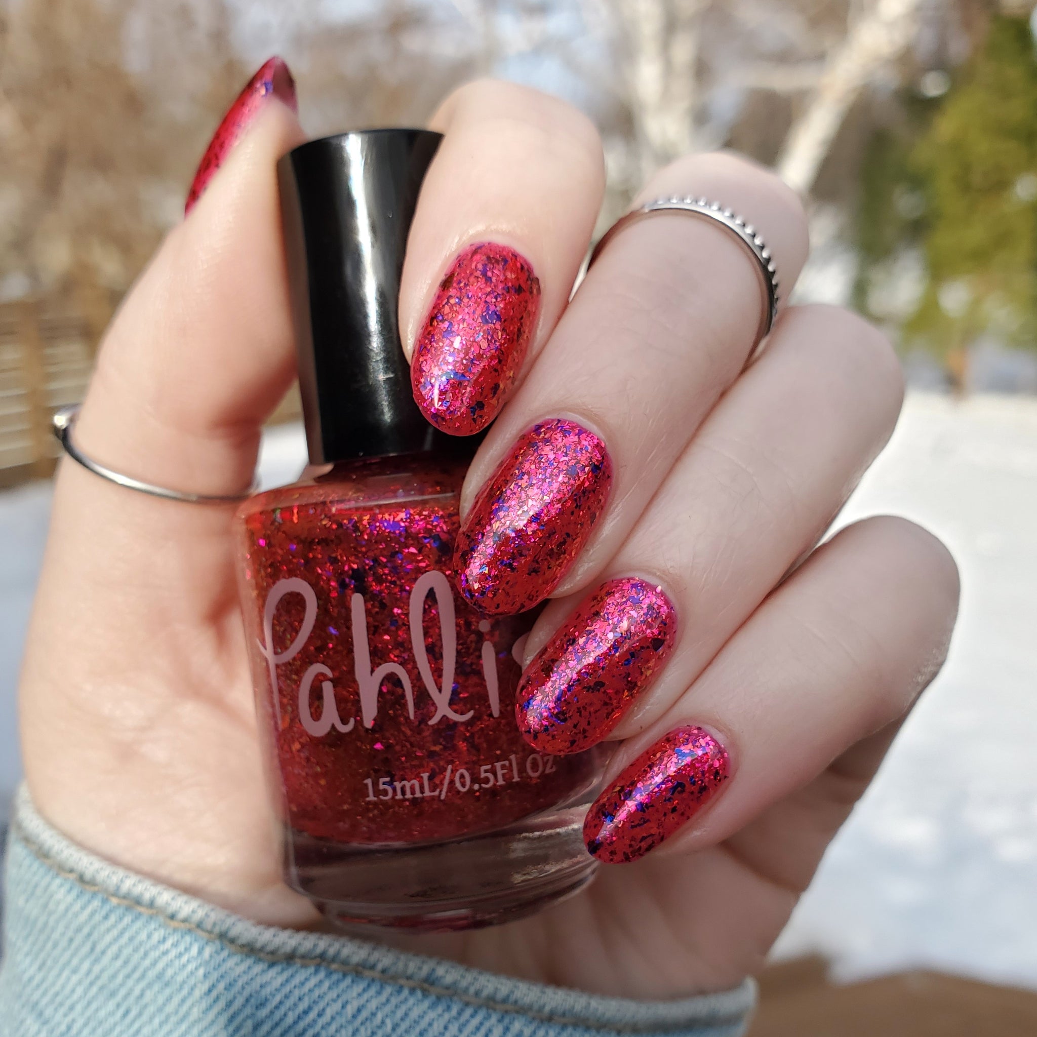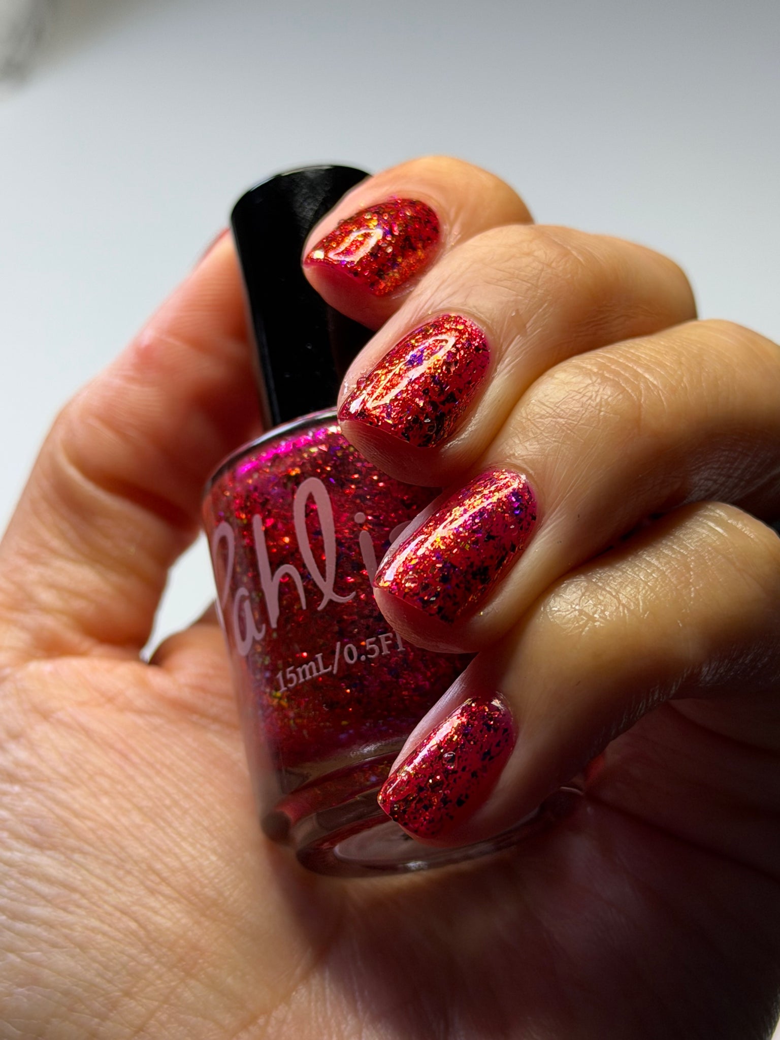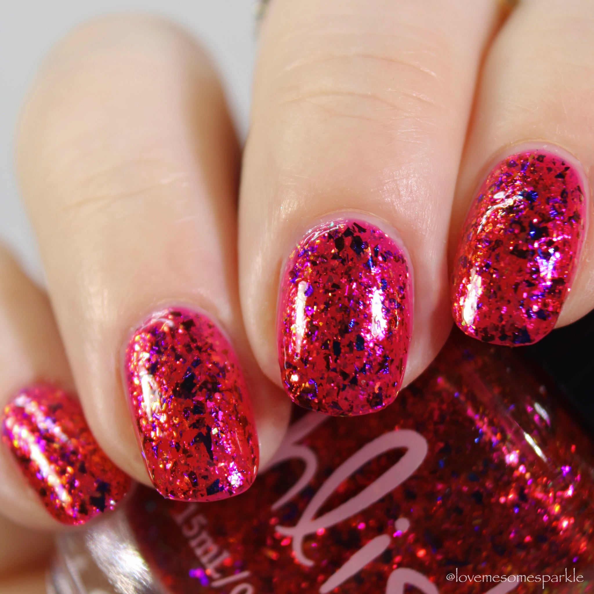 juicy raspberry pink packed with a mix of iridescent pink flakes and blue/pink metallic multichrome flakes