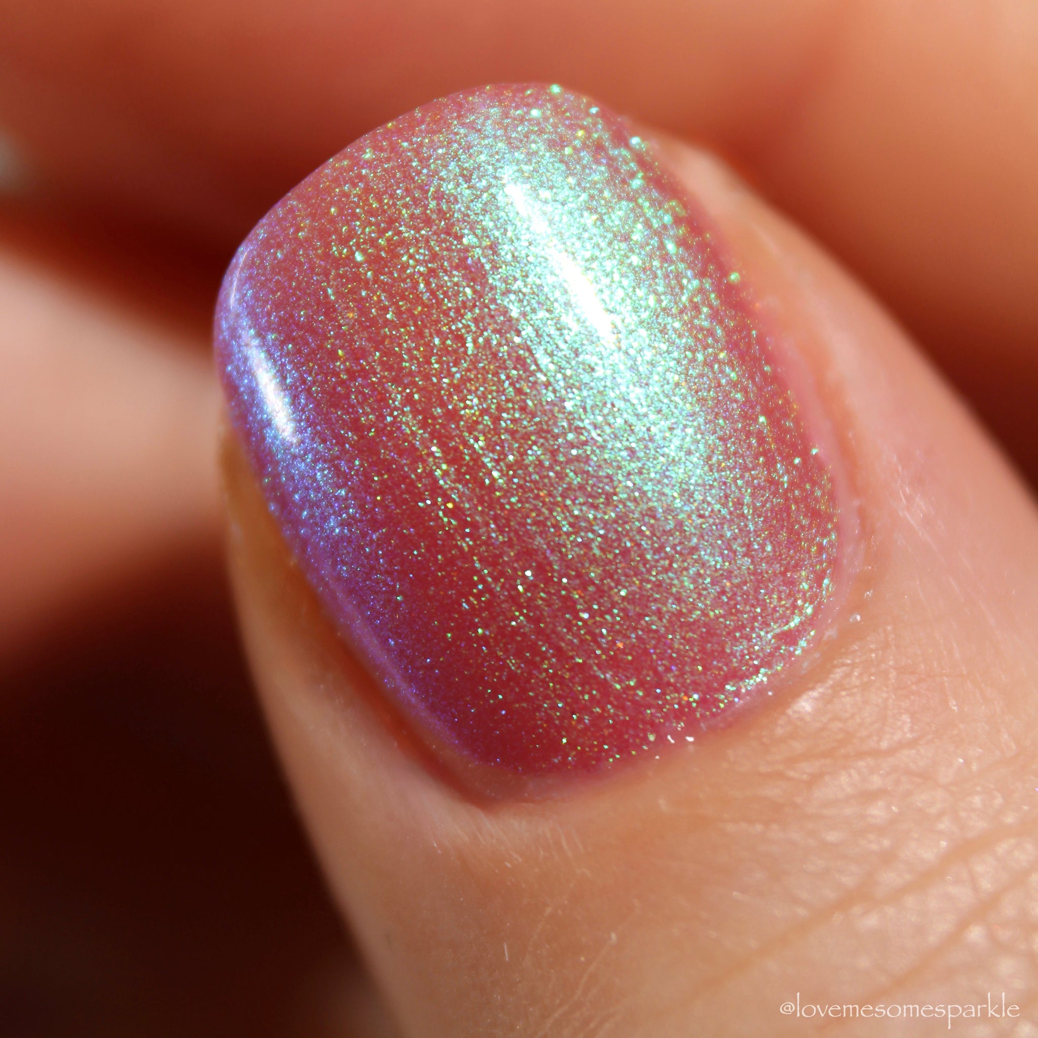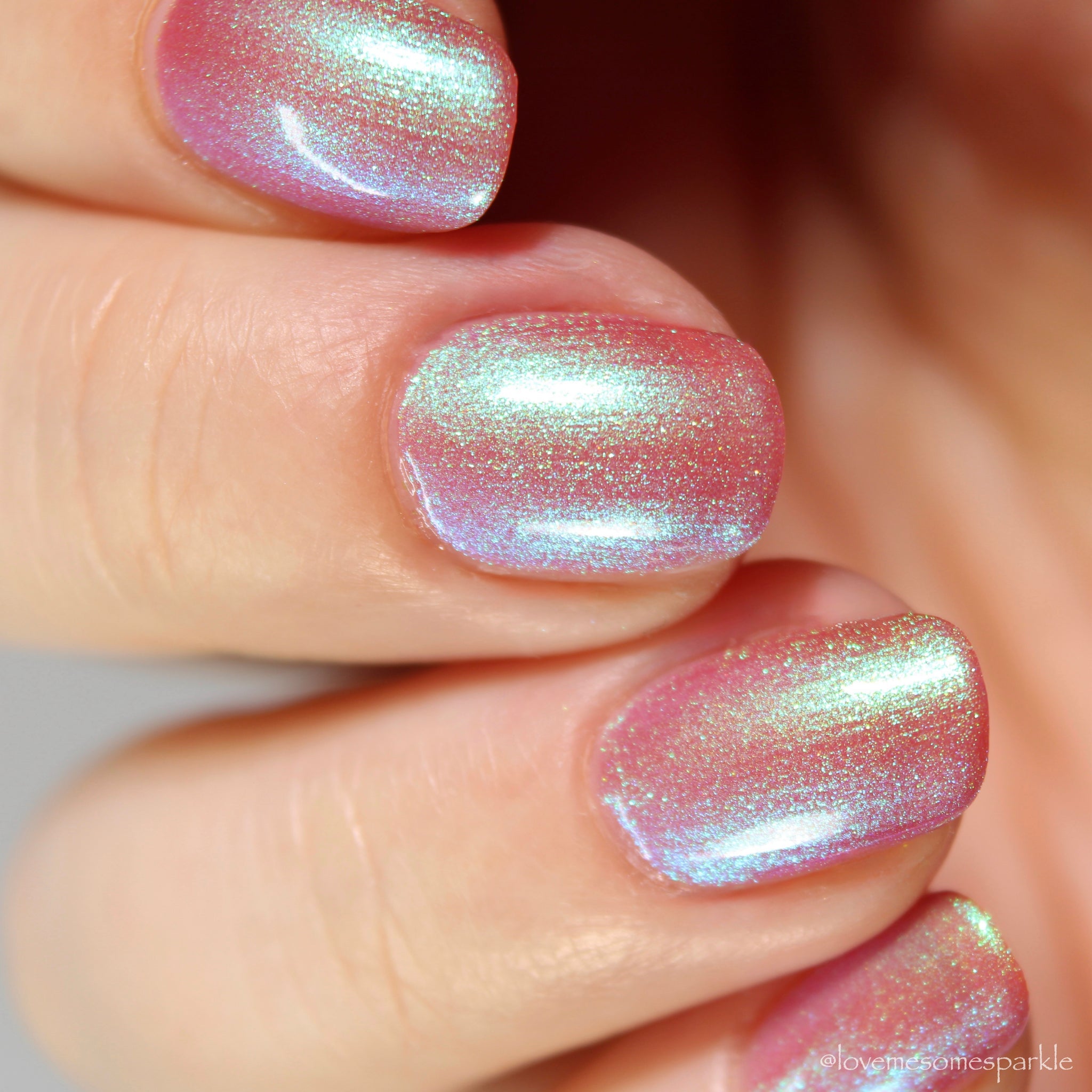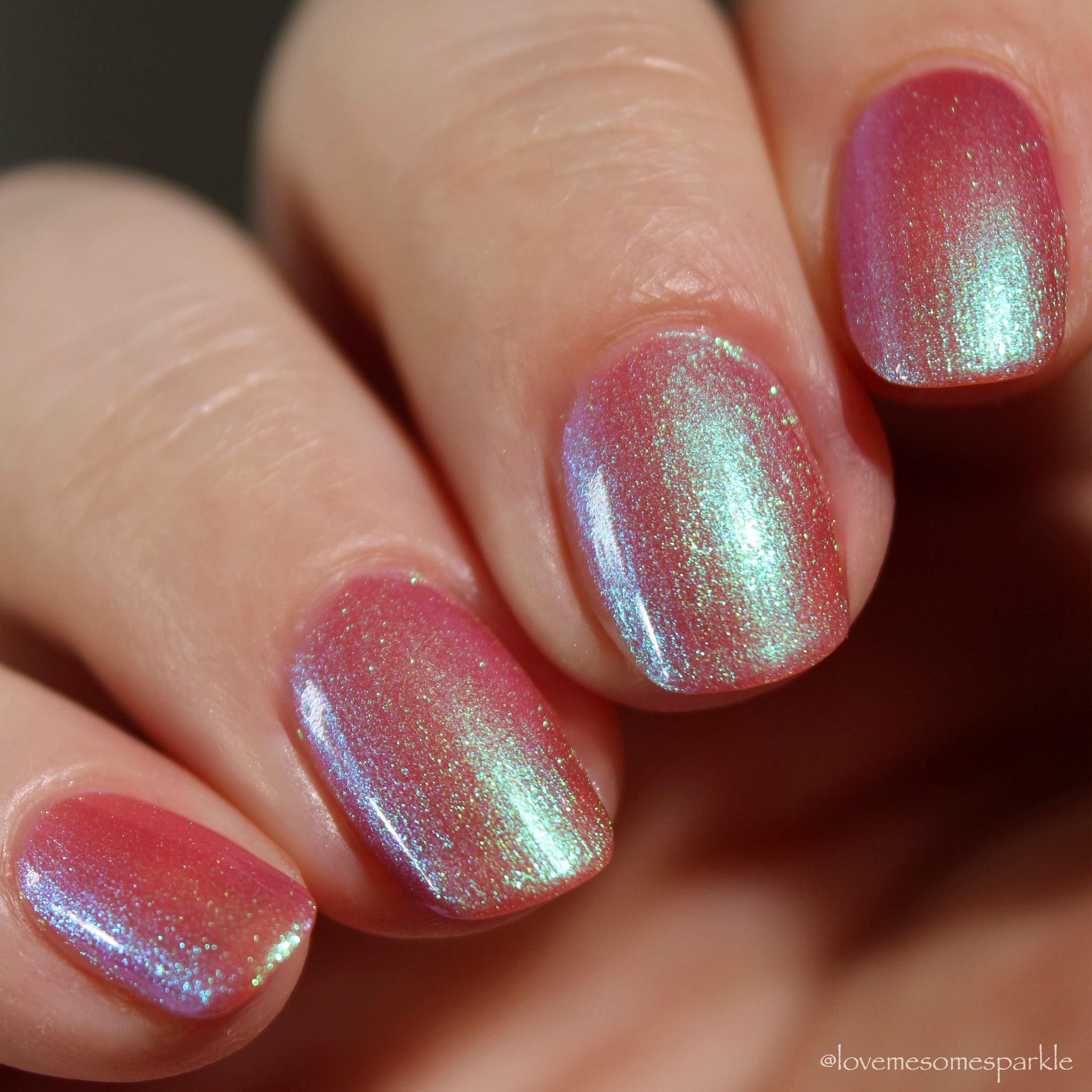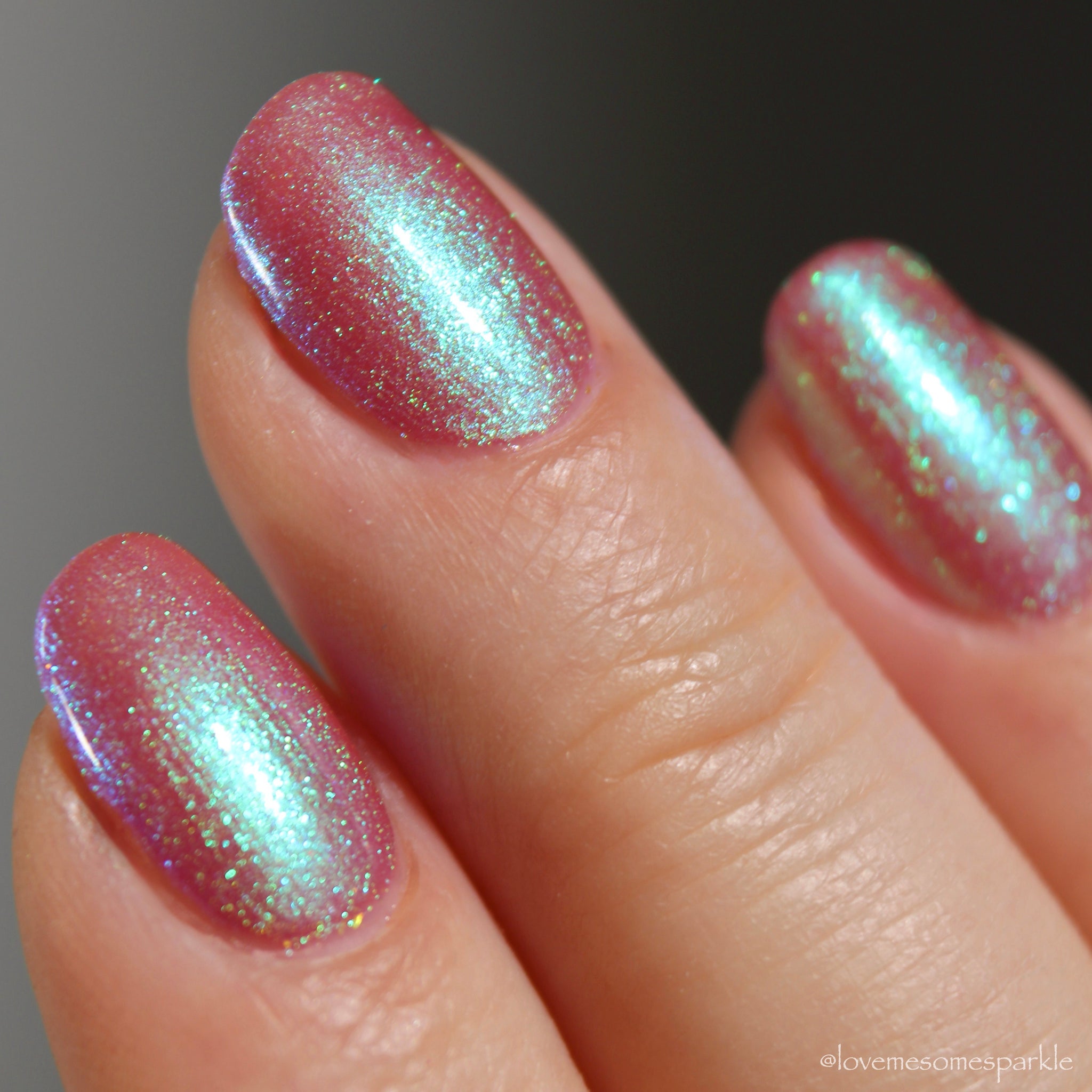 warm rosy pink packed with iridescent aqua/teal/blue shifting shimmer