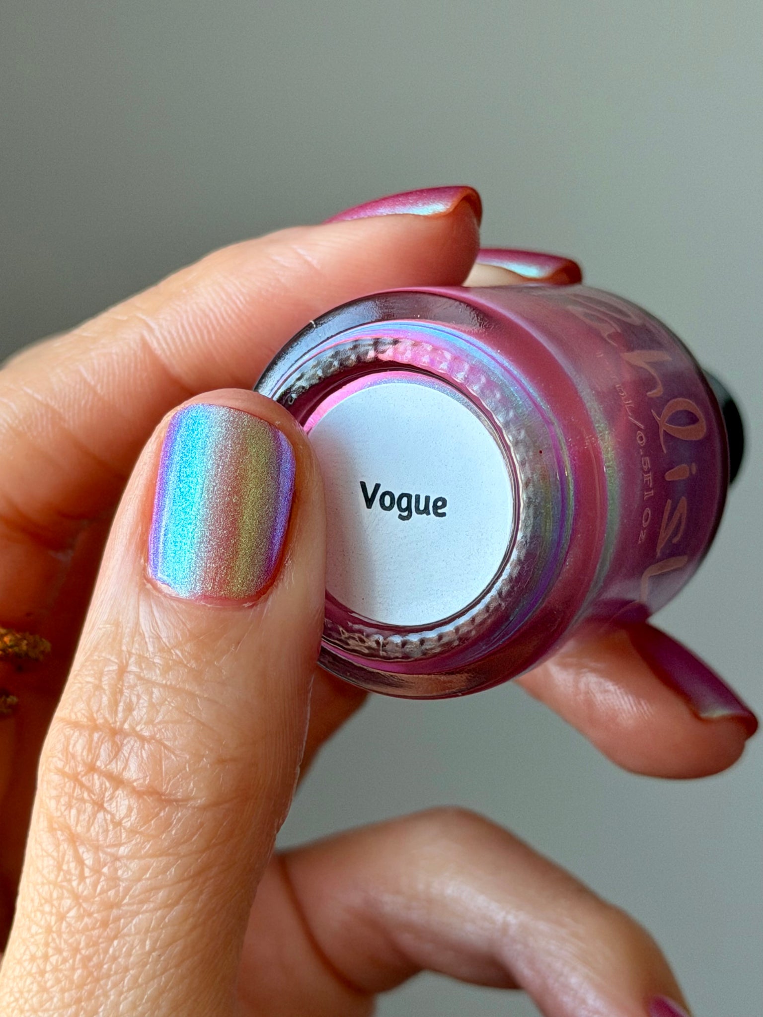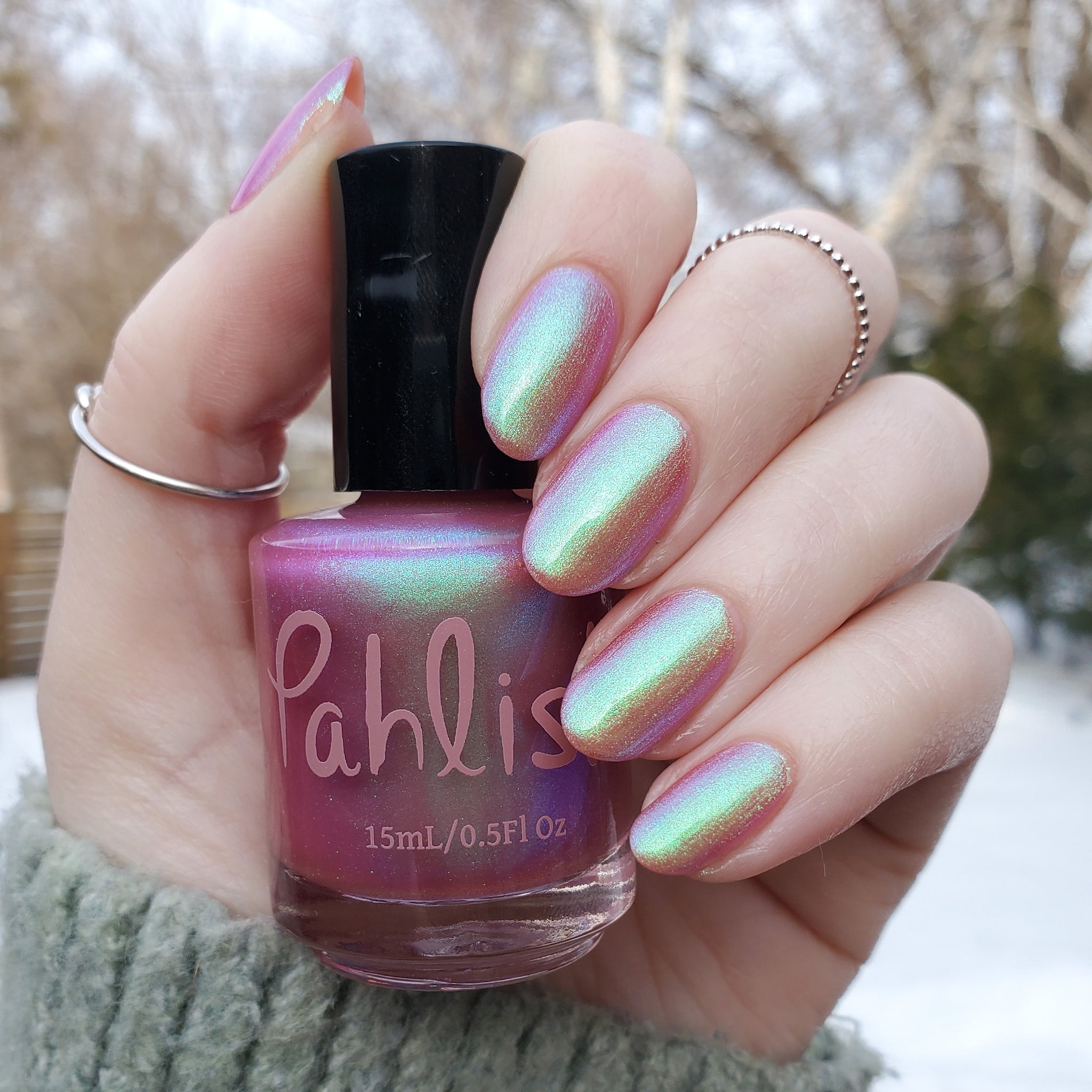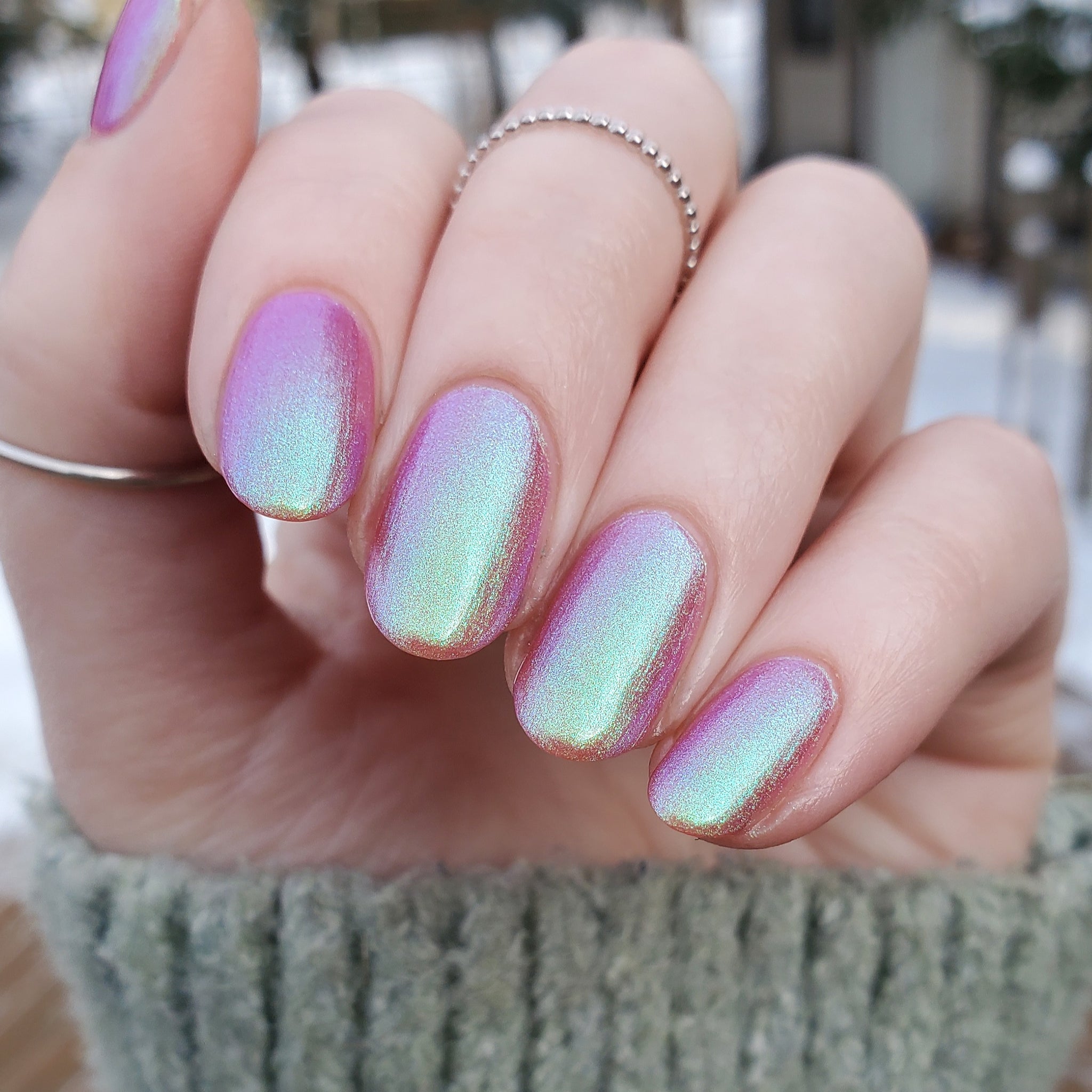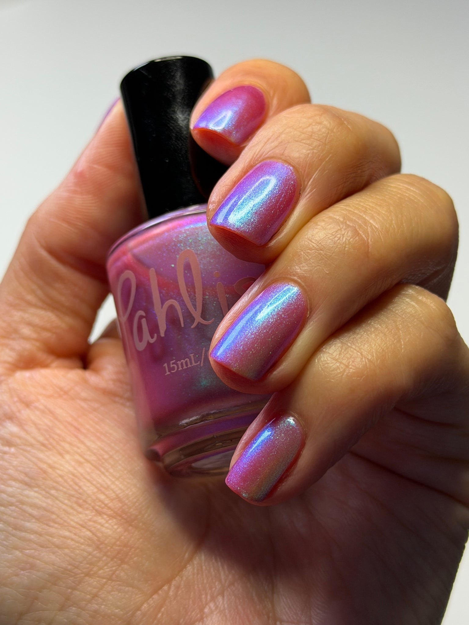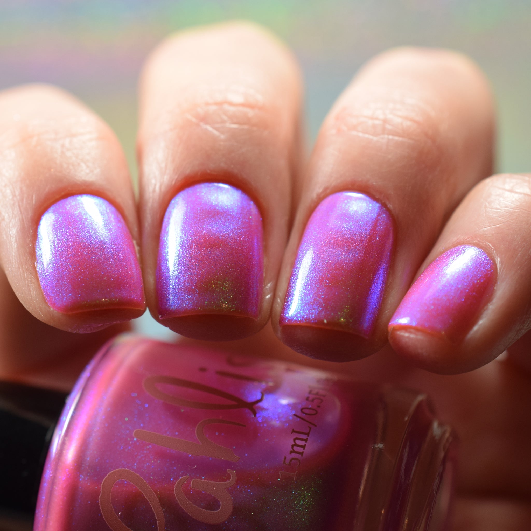 warm rosy pink packed with iridescent aqua/teal/blue shifting shimmer