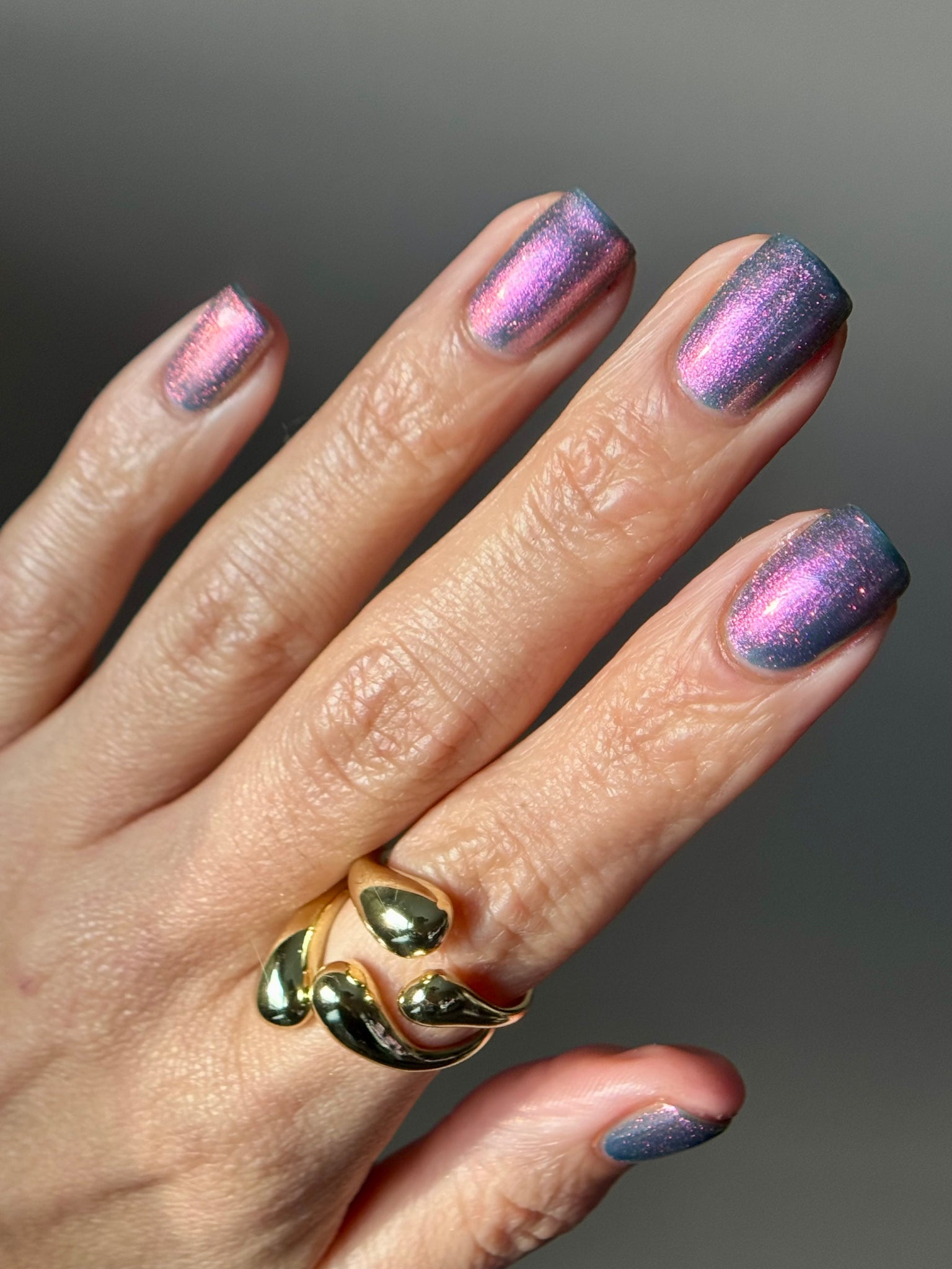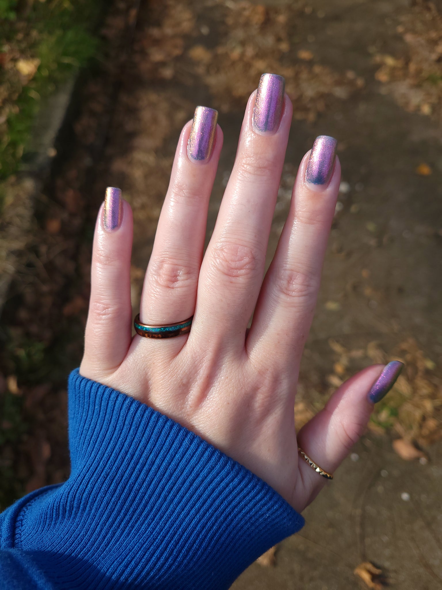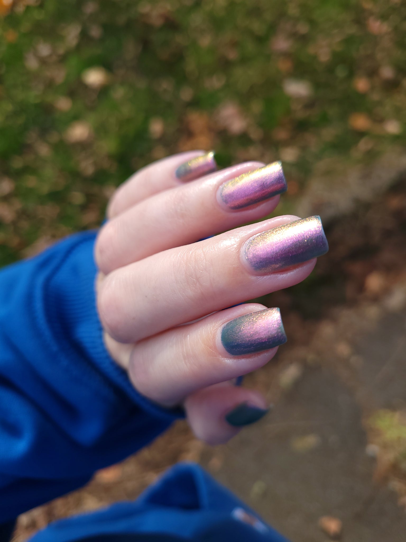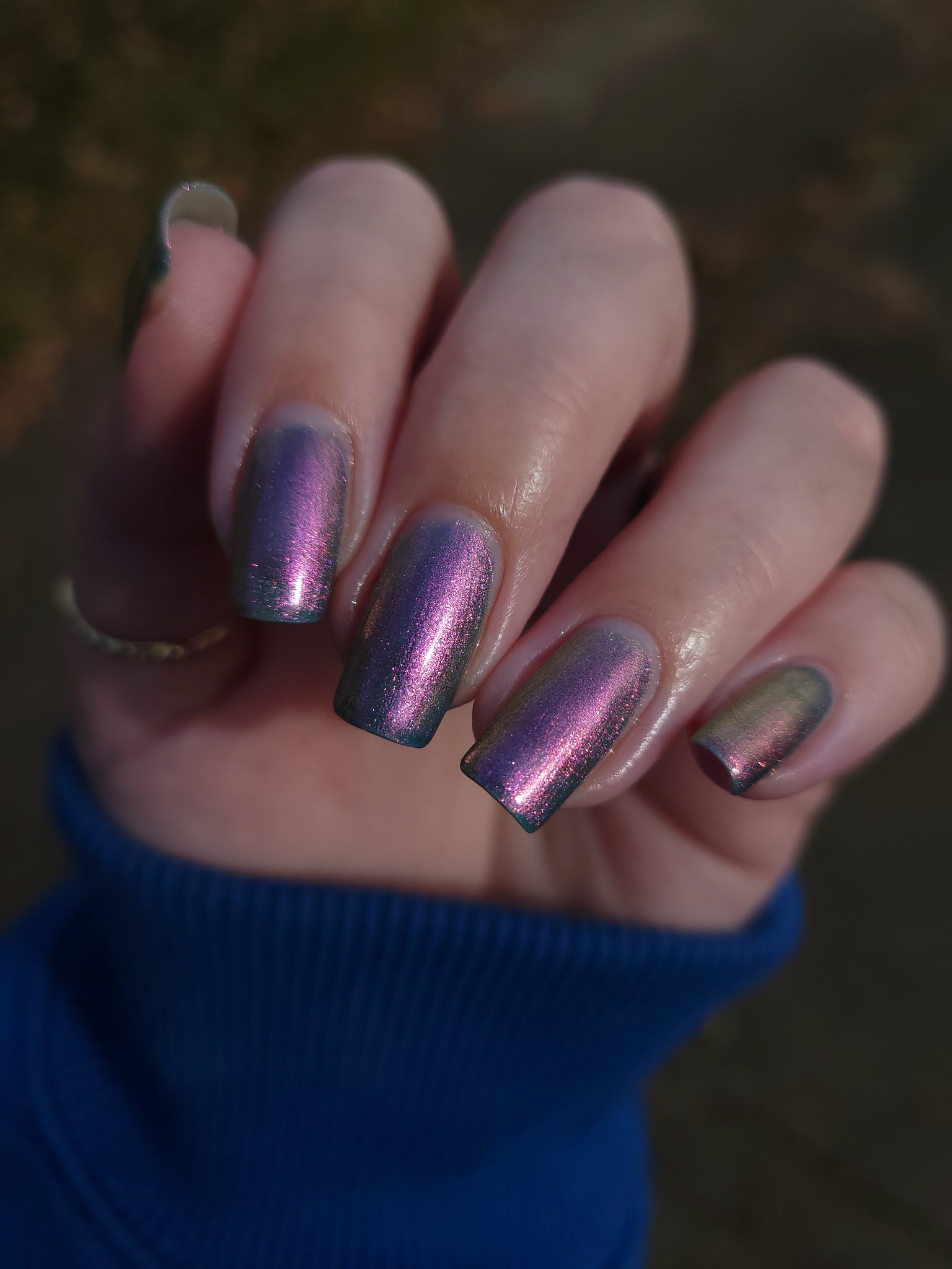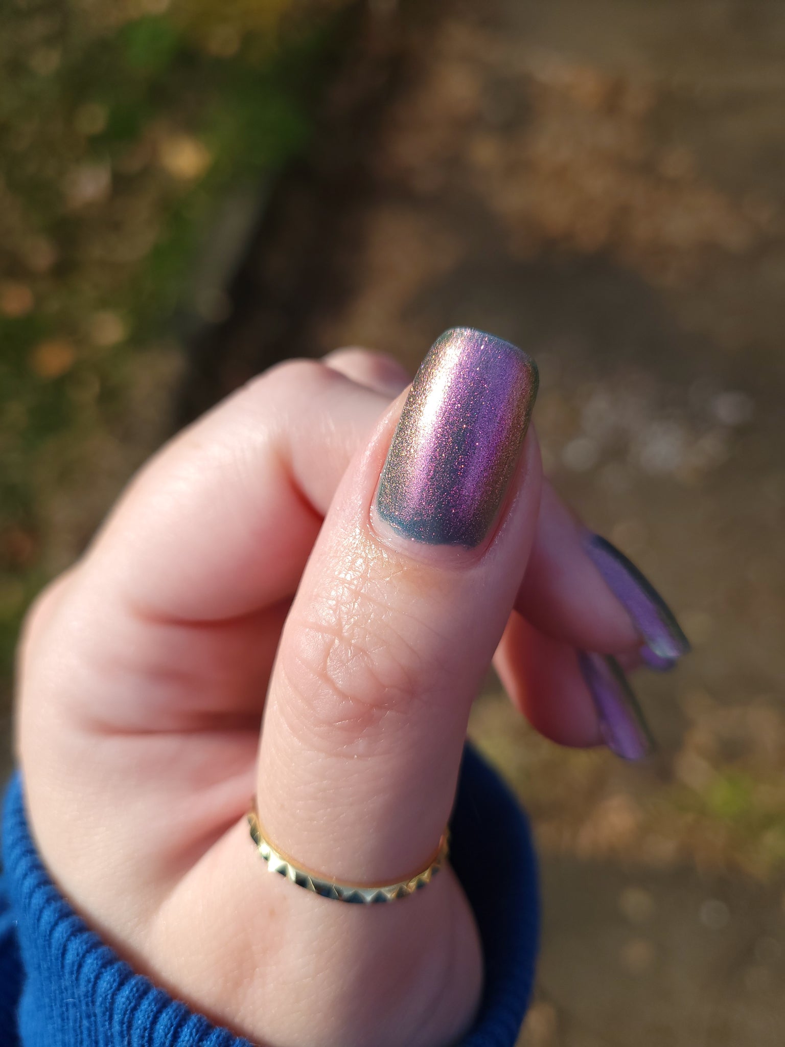 prussian blue packed with fine purple/pink/gold shimmer