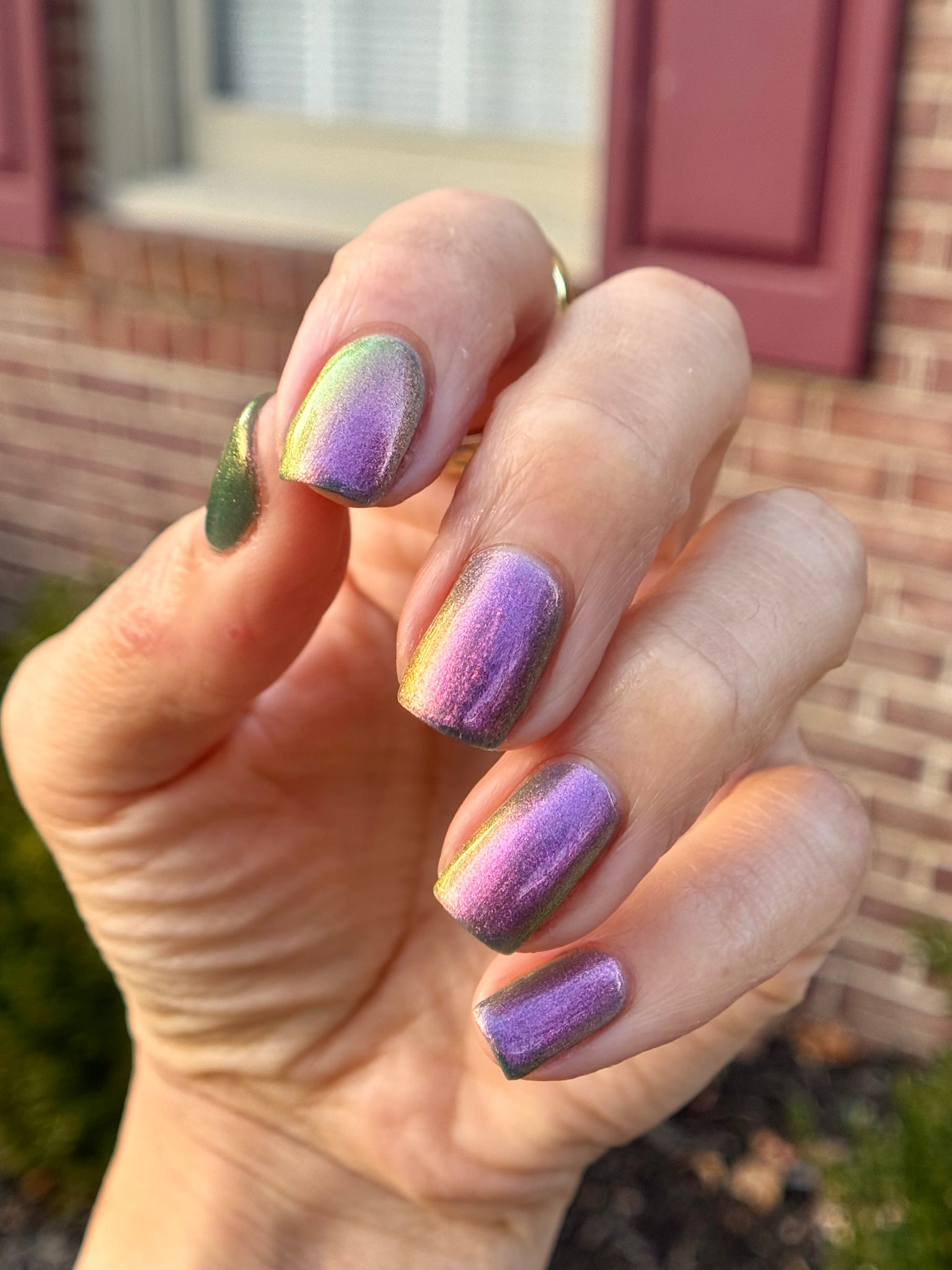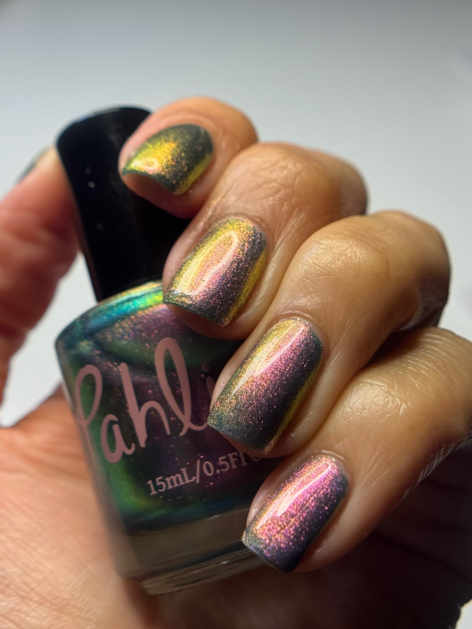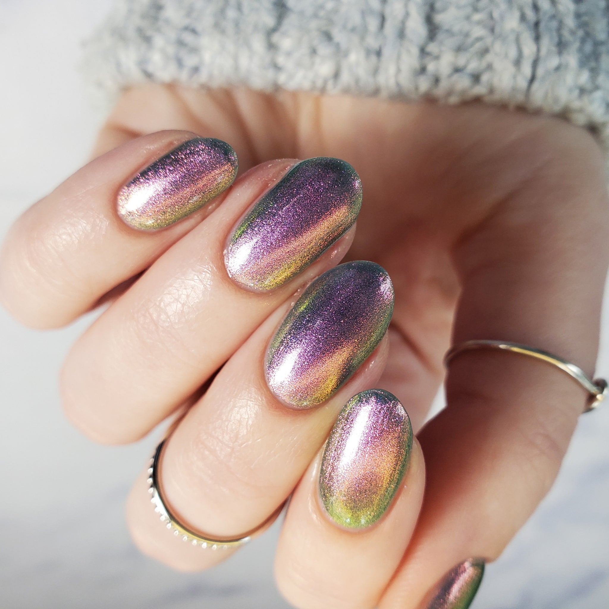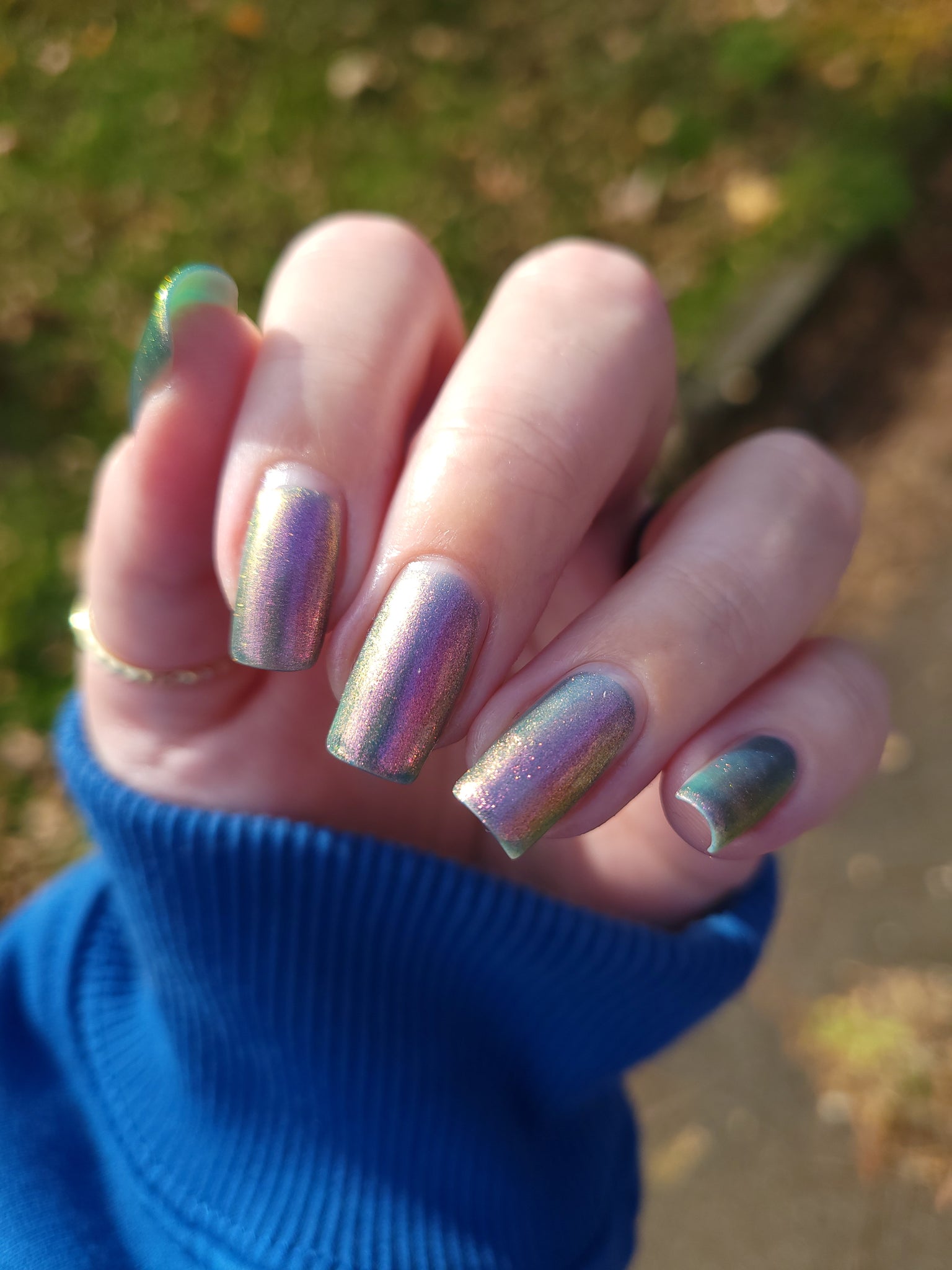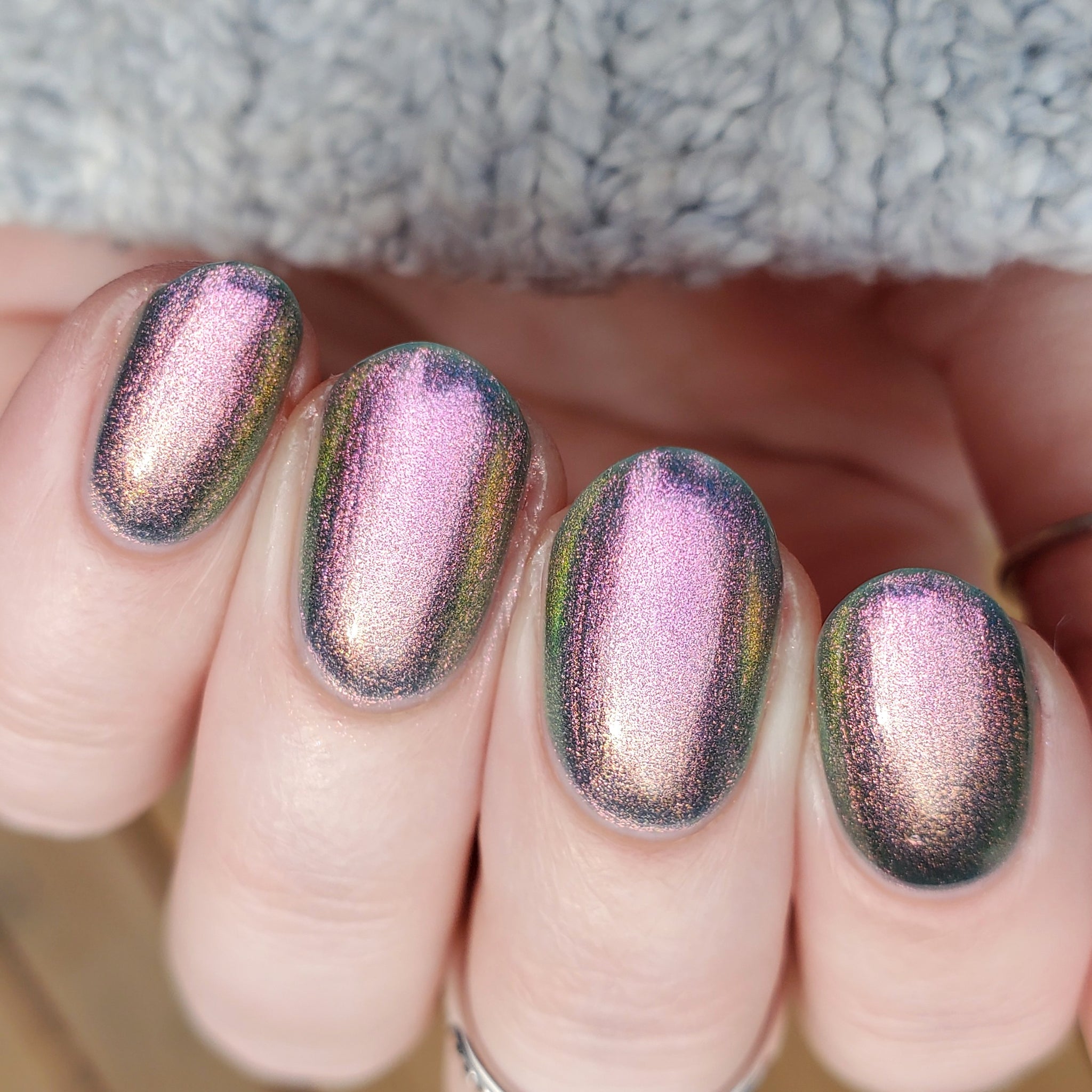 prussian blue packed with fine purple/pink/gold shimmer